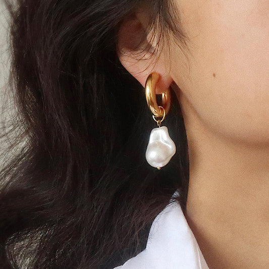 Hypoallergenic Designer Baroque Pearl Earrings Trendy Stainless Steel 18k Gold Plated Statement Hoop Earrings Women