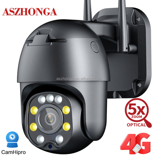 5MP IP Camera 4G SIM CARD 5X Optical Zoom Security Outdoor PTZ HD CCTV Dome Surveillance Cam Motion Tracking CamHipro