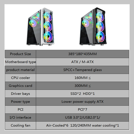 ATX gaming computer case computer cases & towers side penetration tempered glass case