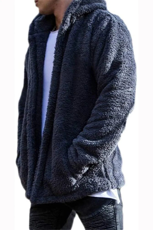 Autumn and Winter Mens Sherpa Fleece oversized Hoodie Blank Loose Teddy Hoodies Jacket for Men