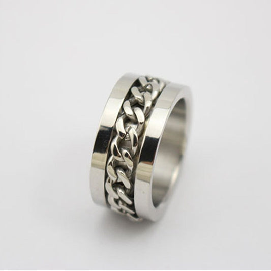 Chain Rings Design Stainless Steel Punk Rock Spinner Ring For Mens & Womens Wedding Bands