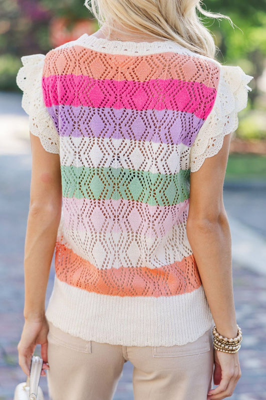 Cable-Knit V-Neck Short Sleeve Knit Top