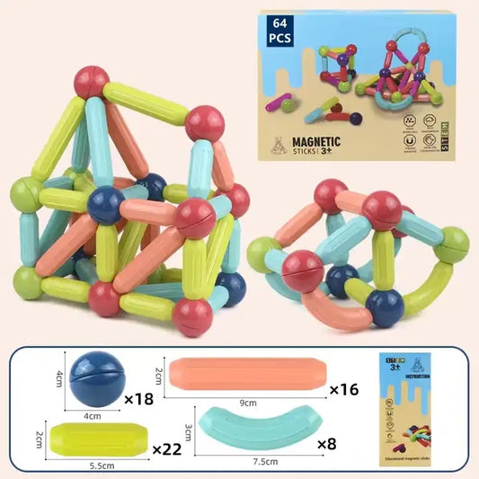 DIY 3D Kids Creative Educational Toy Assembly Building Game Magnet Stick Toys Magnet Rods 64pcs Magnetic Building Blocks