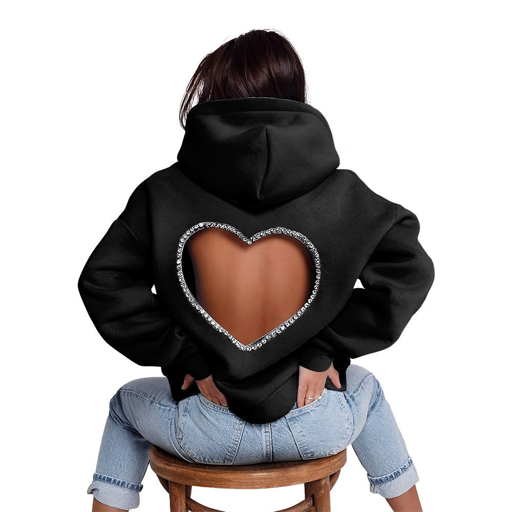 DAMOCHIC Bulk Fall Womens Sweatshirt Loose Diamond Premium Hoodies Luxury Hooded Pullover Heart Cutout Back Hoodies for Women