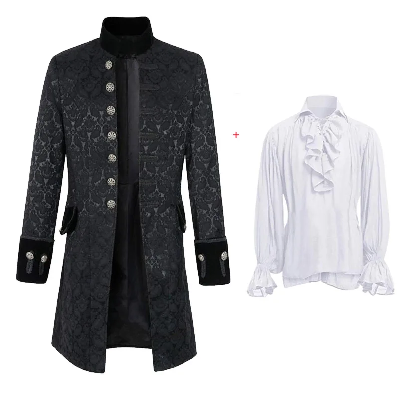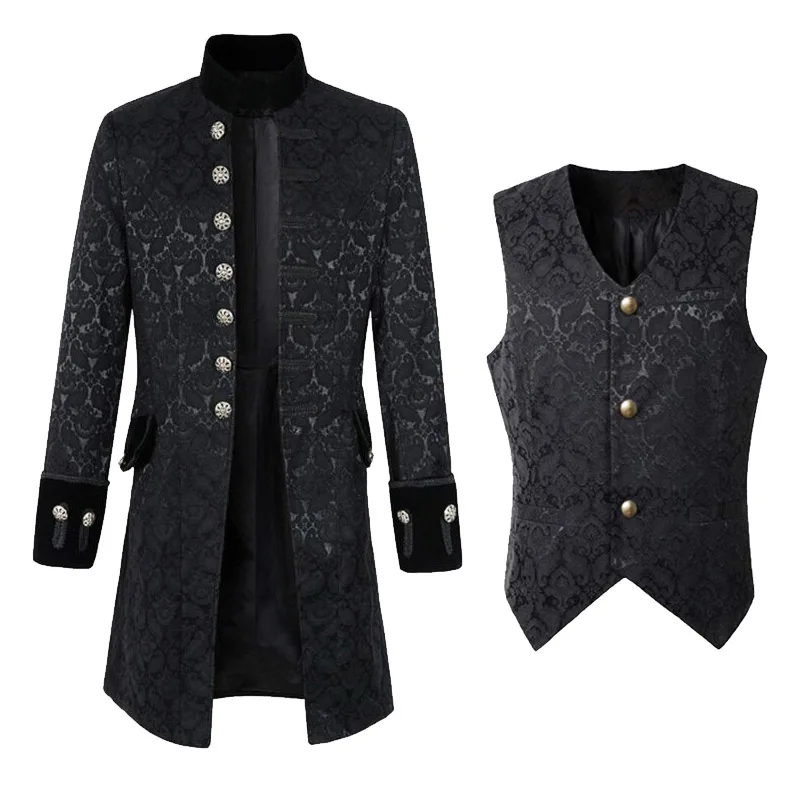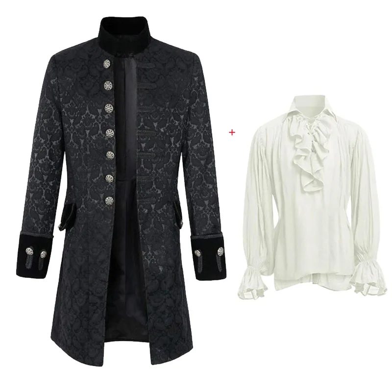 Medieval Vampire Cosplay Costume Steampunk Jacket Vest Coat Victorian Ghost Gothic Blazer Suits Stand Collar Trench Men's Shirt