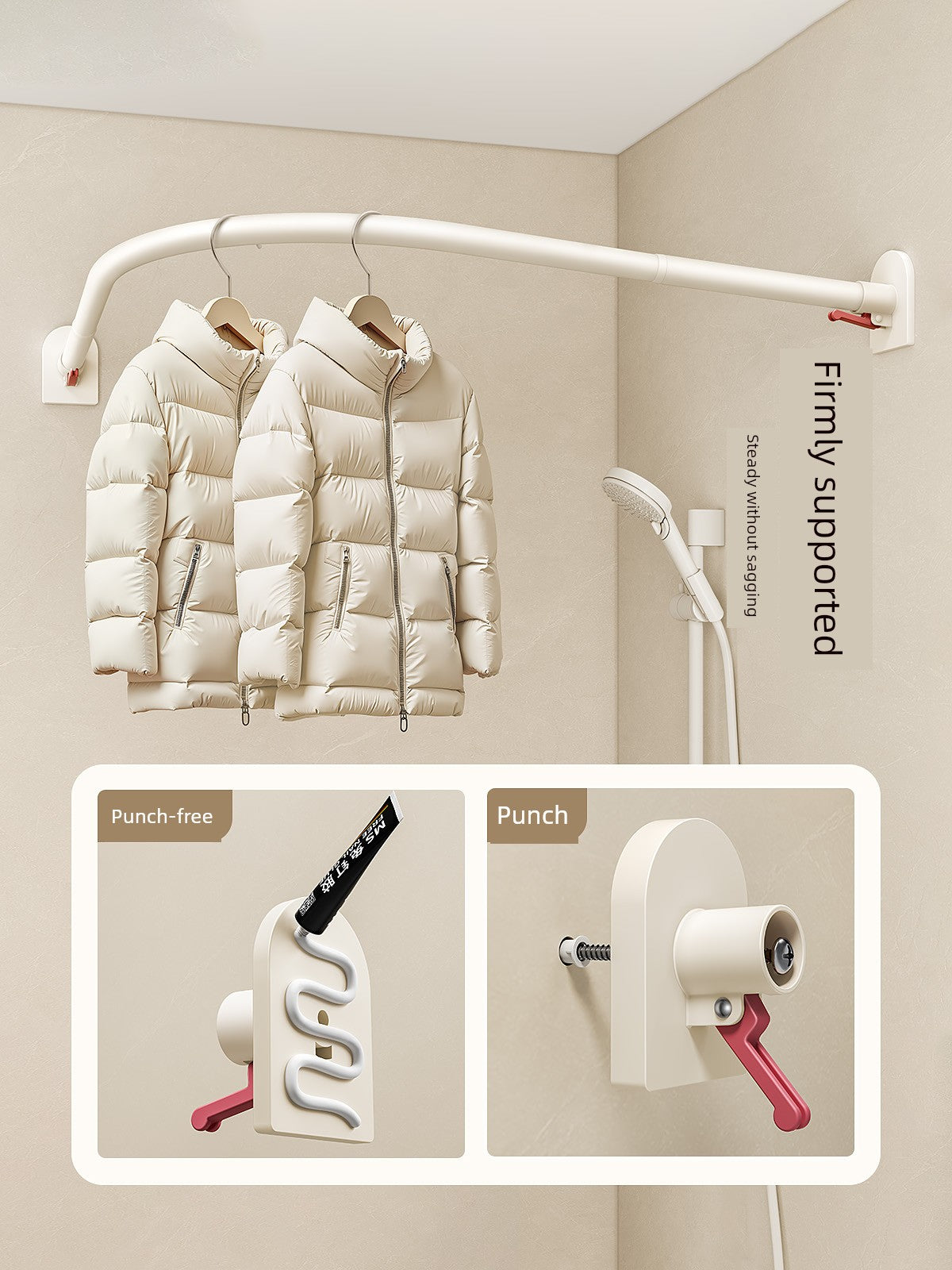 Waterproof Partition Foldable Curved Rod Dry Wet Separation Shower Curtain