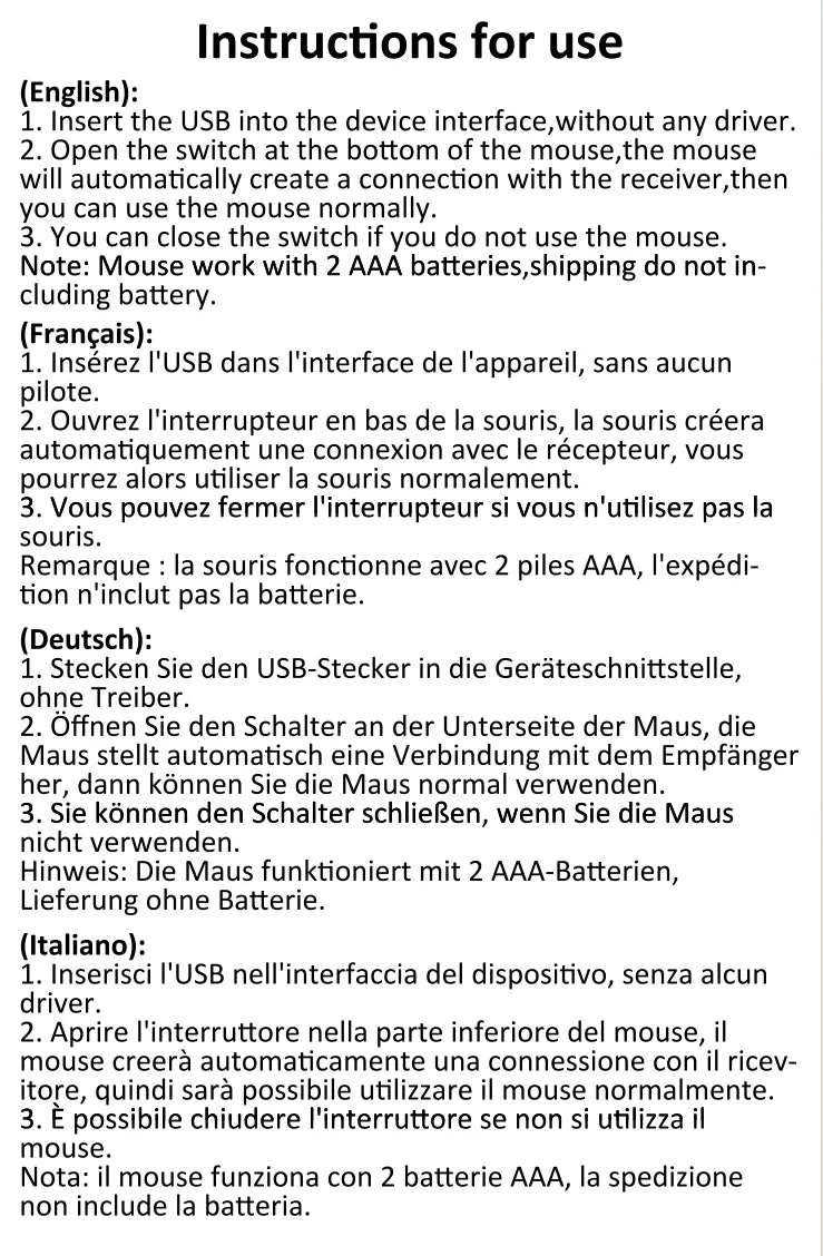 3. You can close the switch if you do not use the mouse.Note: Mouse work with 2 AAA batteries,shipping do not in-cluding battery.