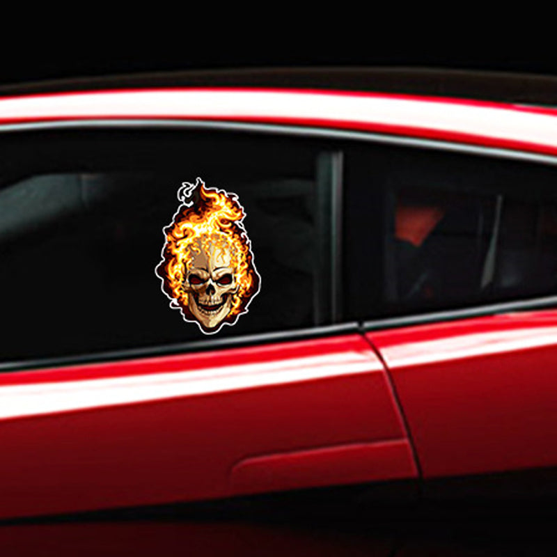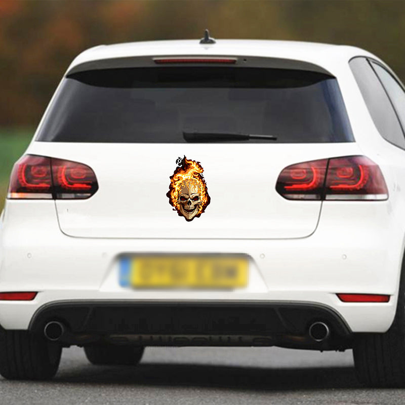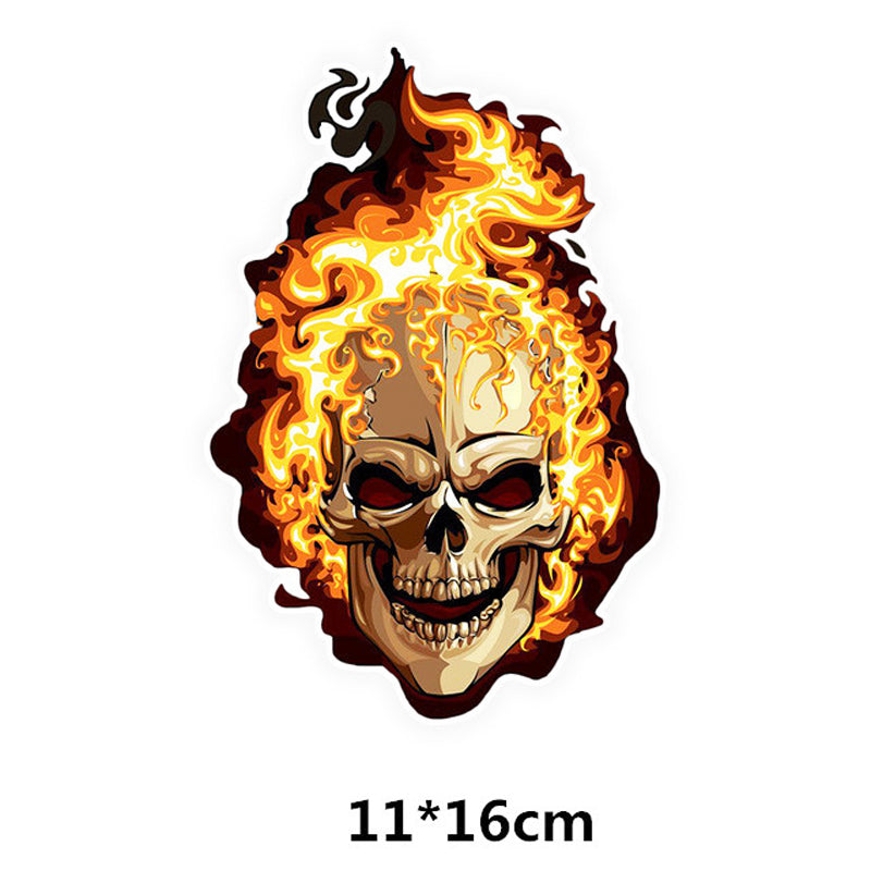 16*11cm 3D Reflective Funny Vinyl Skeleton Car Body Styling Fire Skull Car Sticker