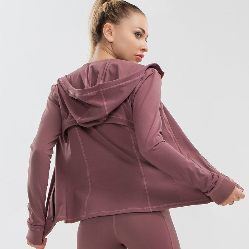 2021 New Fast Delivery Autumn Outdoor Workout Sports Zip Up Coat Hoodies Skinny Yoga Fitness Gym Running Hooded Jacket Women