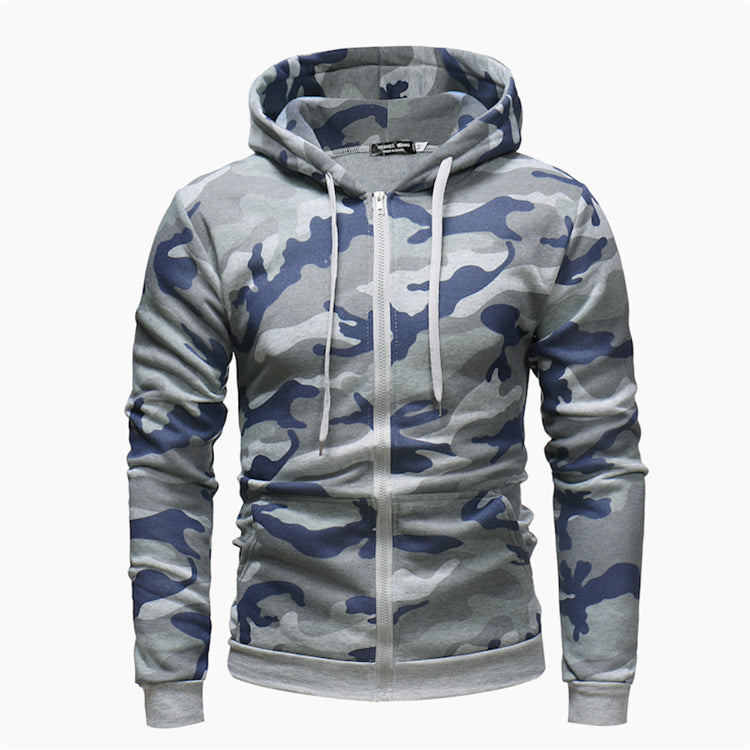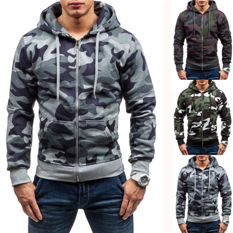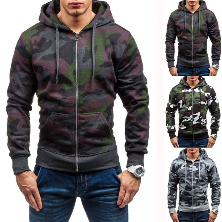 2021 New Men's Autumn Personality Zipper Camouflage Hooded Sweater Men's Pullover Hoodies