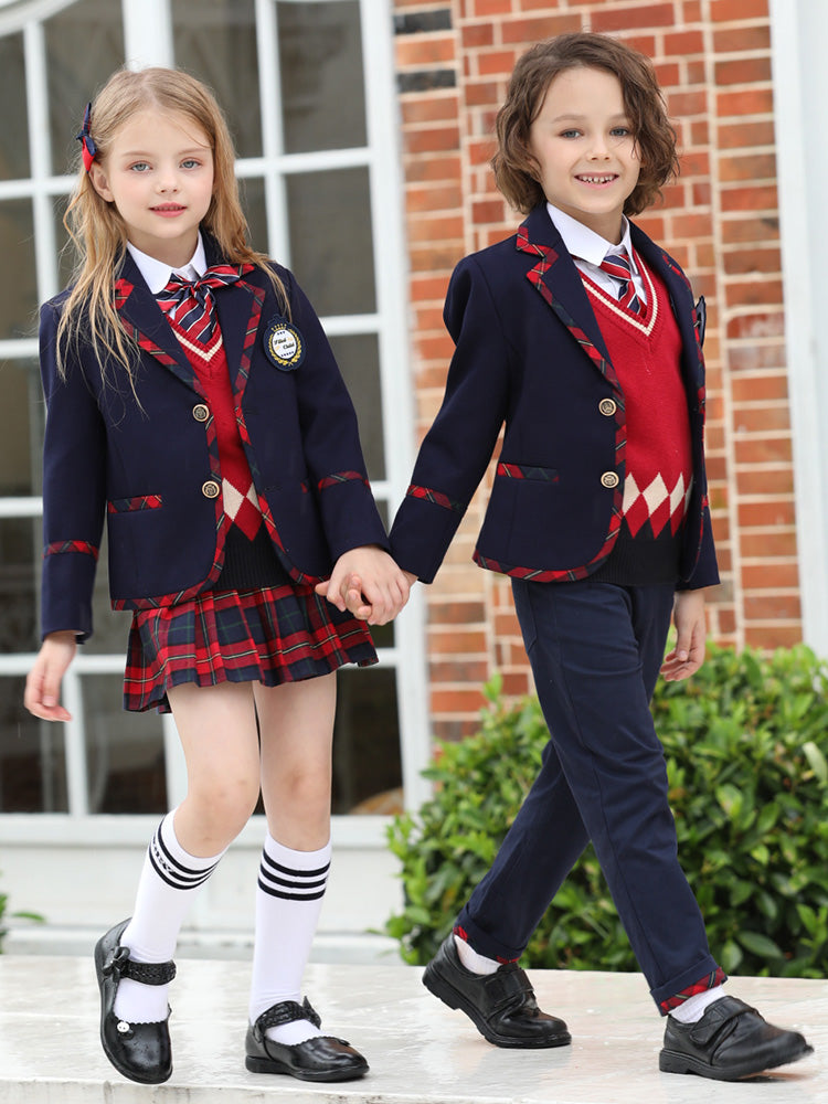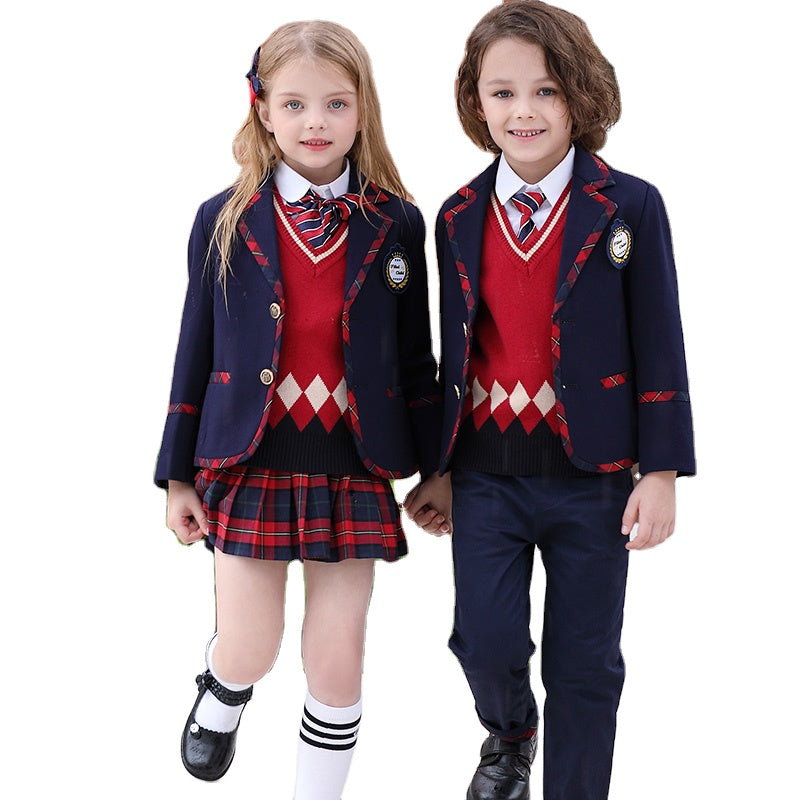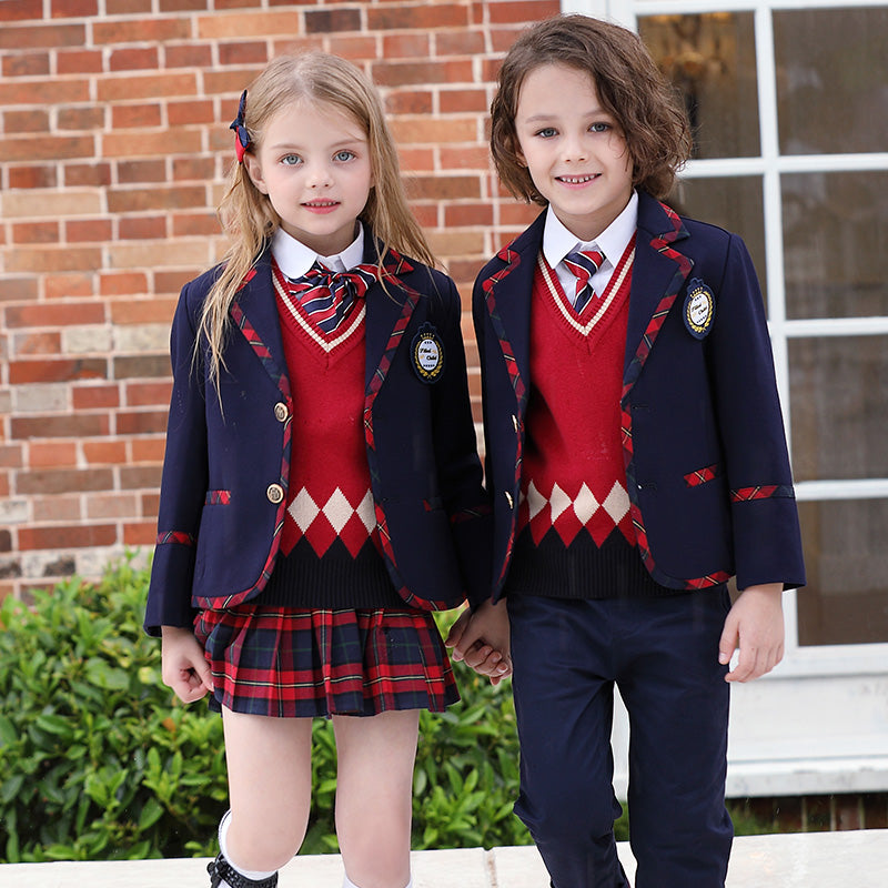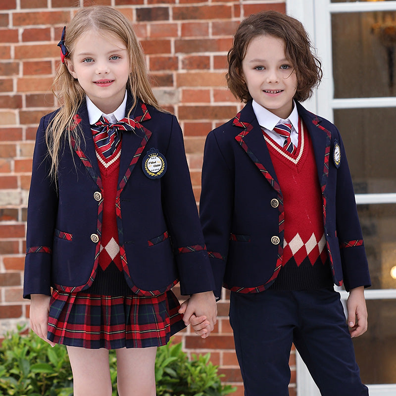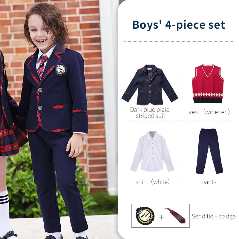 Hot sell spring autumn suit set 6 pieces school uniforms for primary and secondary school kids OEM acceptable kids clothing
