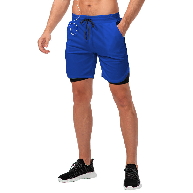 2023 Men Breathable Double Layer Loose Gym Sports Shorts With Pockets Workout Active Wear Outdoor