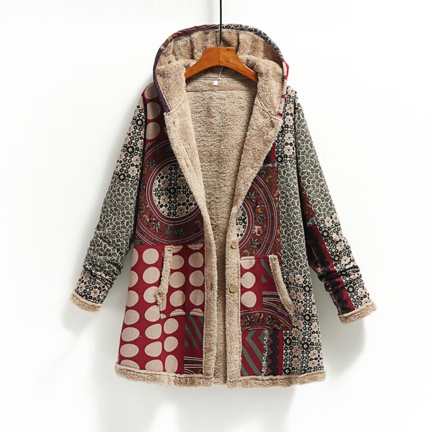 2023 Plus Size Vintage Button Fly Pockets Printed Thick Warm Woman Jacket Winter Coat