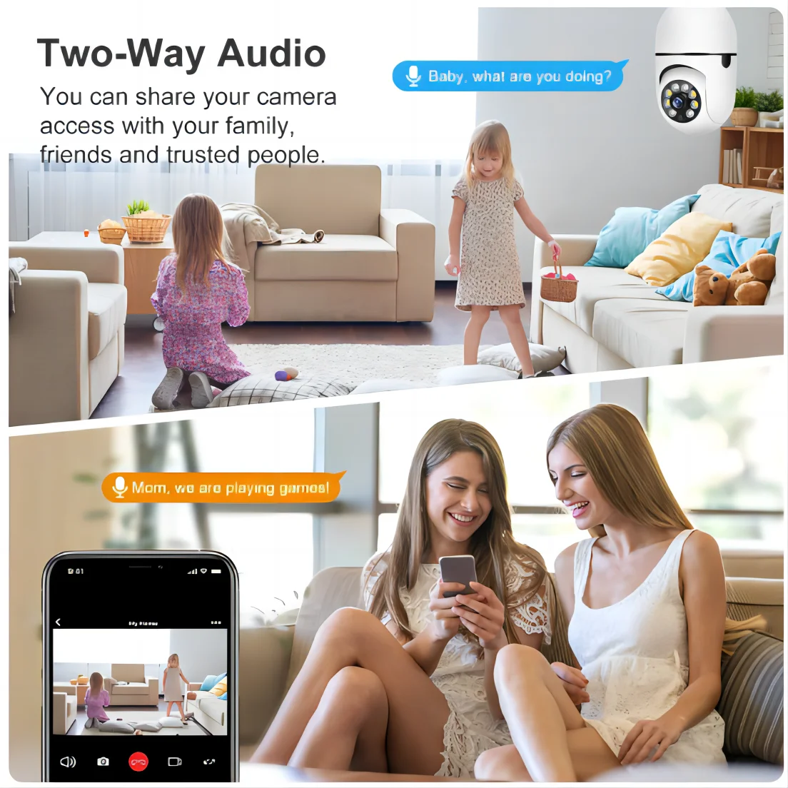 ✨【Duel Lens】: The security camera light bulb with 3MP super HD image, let you see the every details of the monitoring clearly.