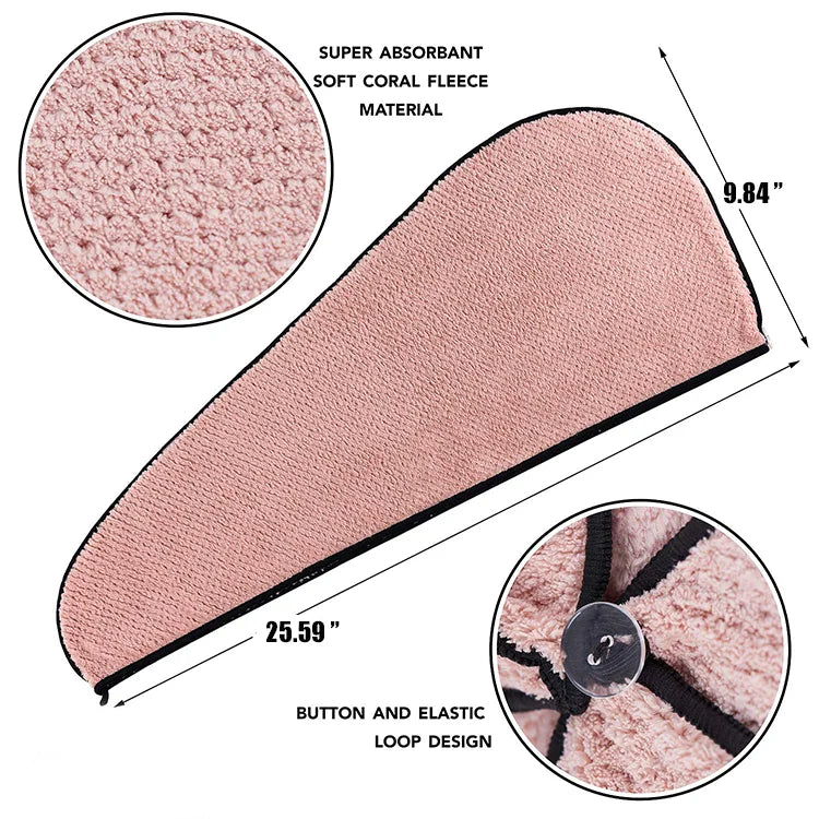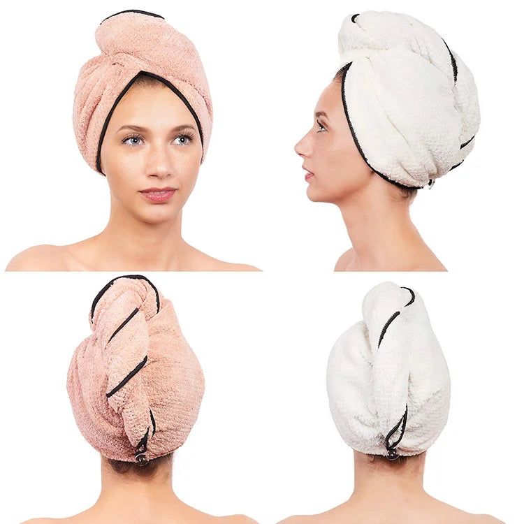 CHENGHE Hot selling Hair towel dry hair microfiber quick magic drying wrap turban bath shower woem head towel with buttons