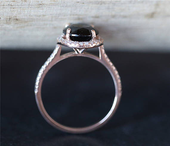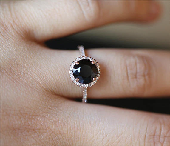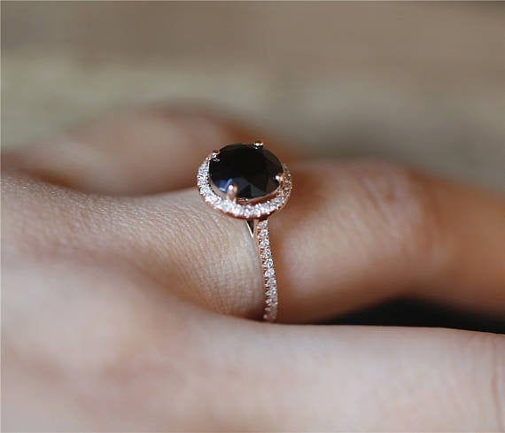925 Sterling Silver Color Style Women's Black Close Ring Inlaid Zircon Diamond Gemstone Rose Gold Geometric Jewelry