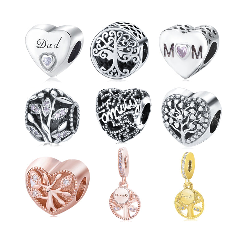 925 sterling silver jewelry the tree of life series bead pendant dad and mom loving heart charm for jewelry making