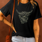 Bull Head Embroidered Round Neck T Shirt