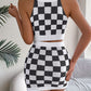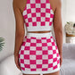 Checkered Grecian Neck Cami and Skirt Sweater Set