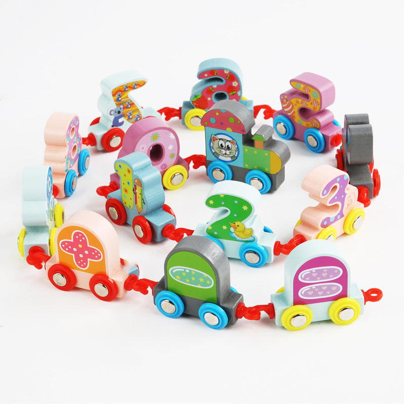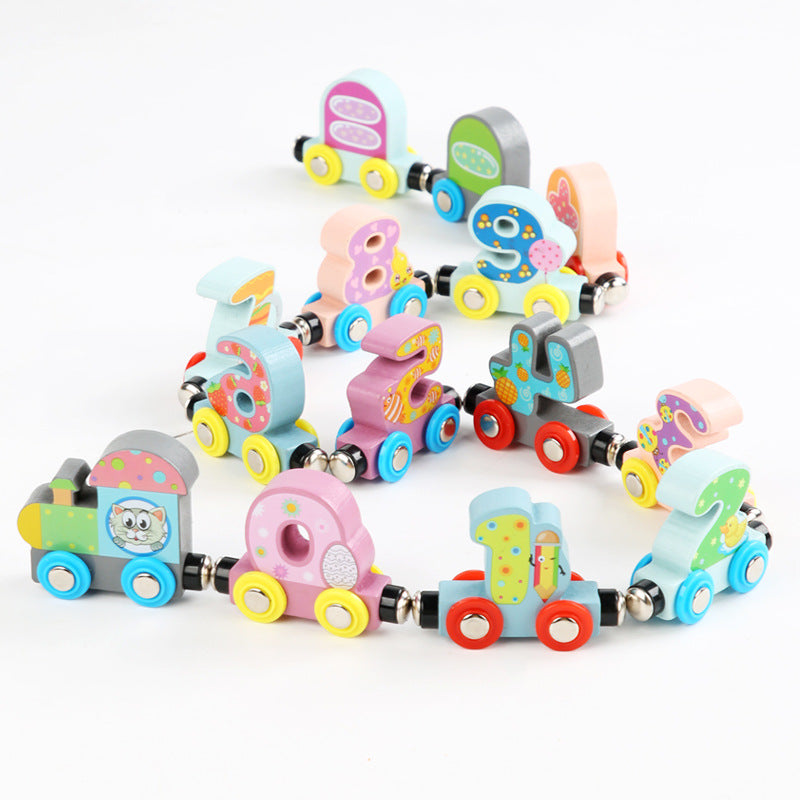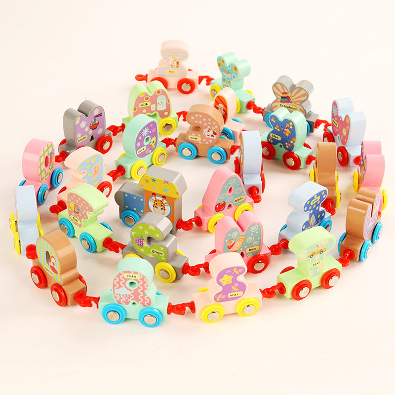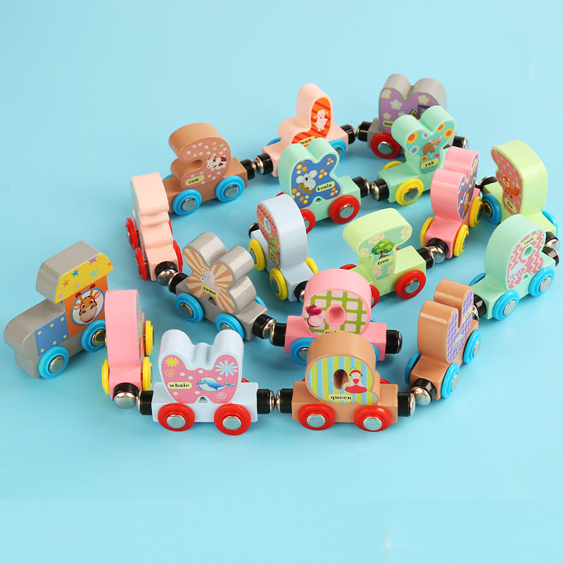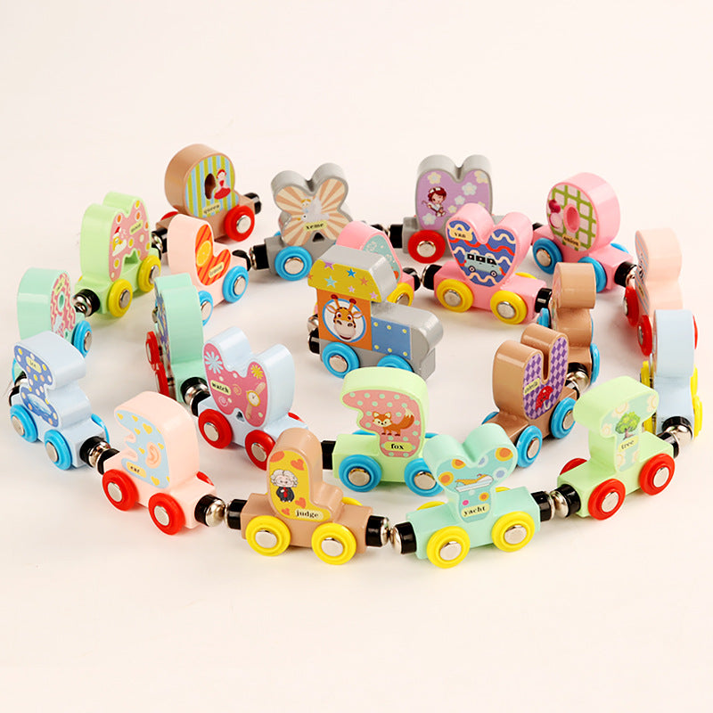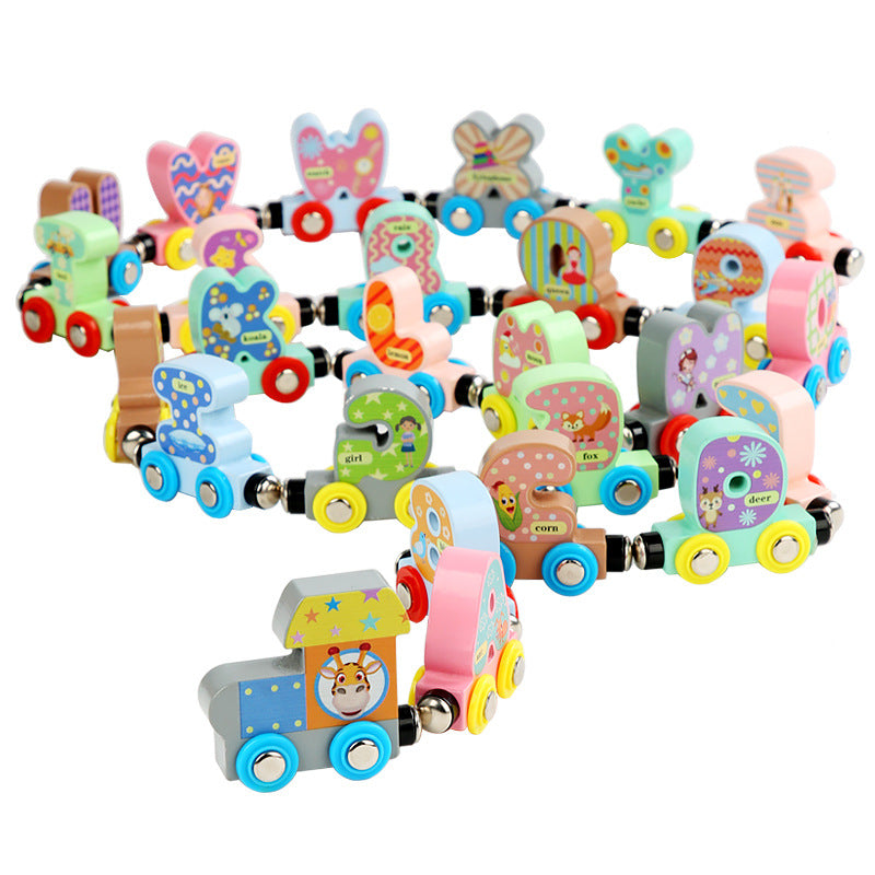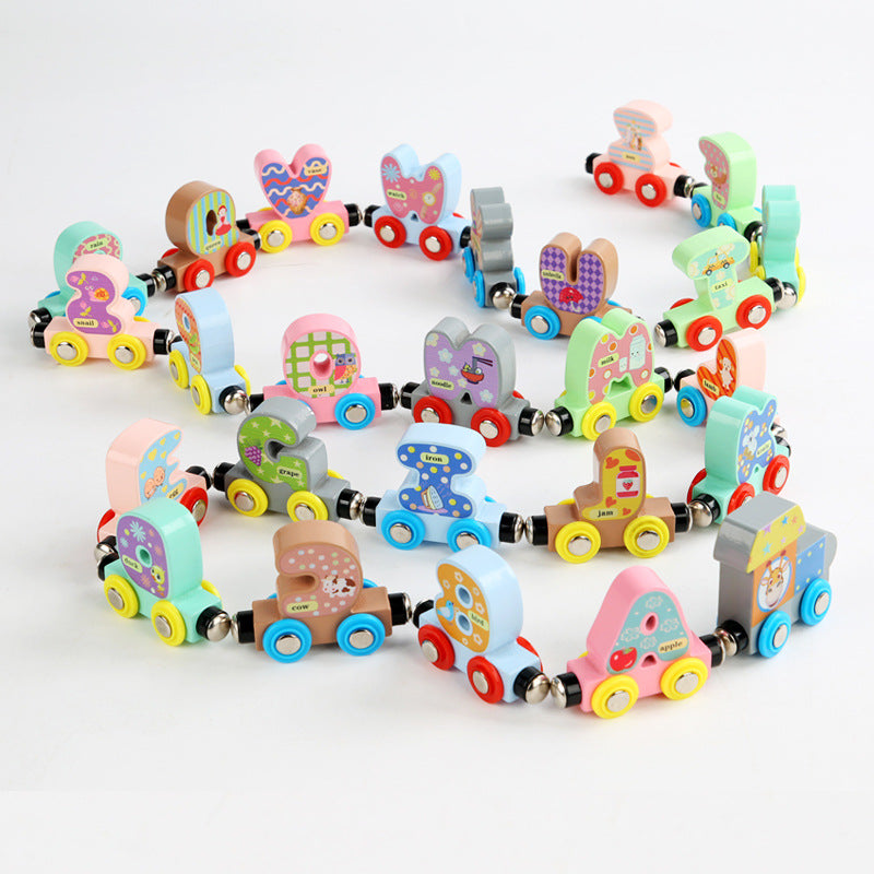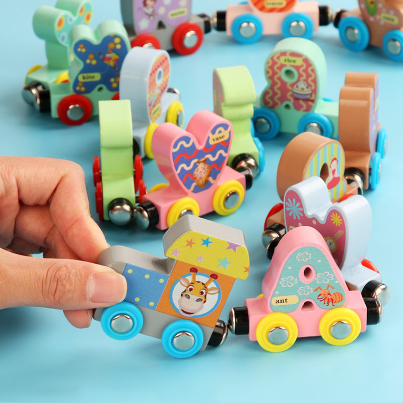 Children Wooden Toy Magnetic Mini Train Set Letters Number Cognitive Wooden Vehicle Toy Kids Educational Wooden Train Toy