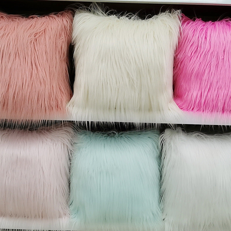 Cloth Soft Pink Cushions Covers White Throw Pillow Fluffy Decorative Faux Fur Cushion Cover