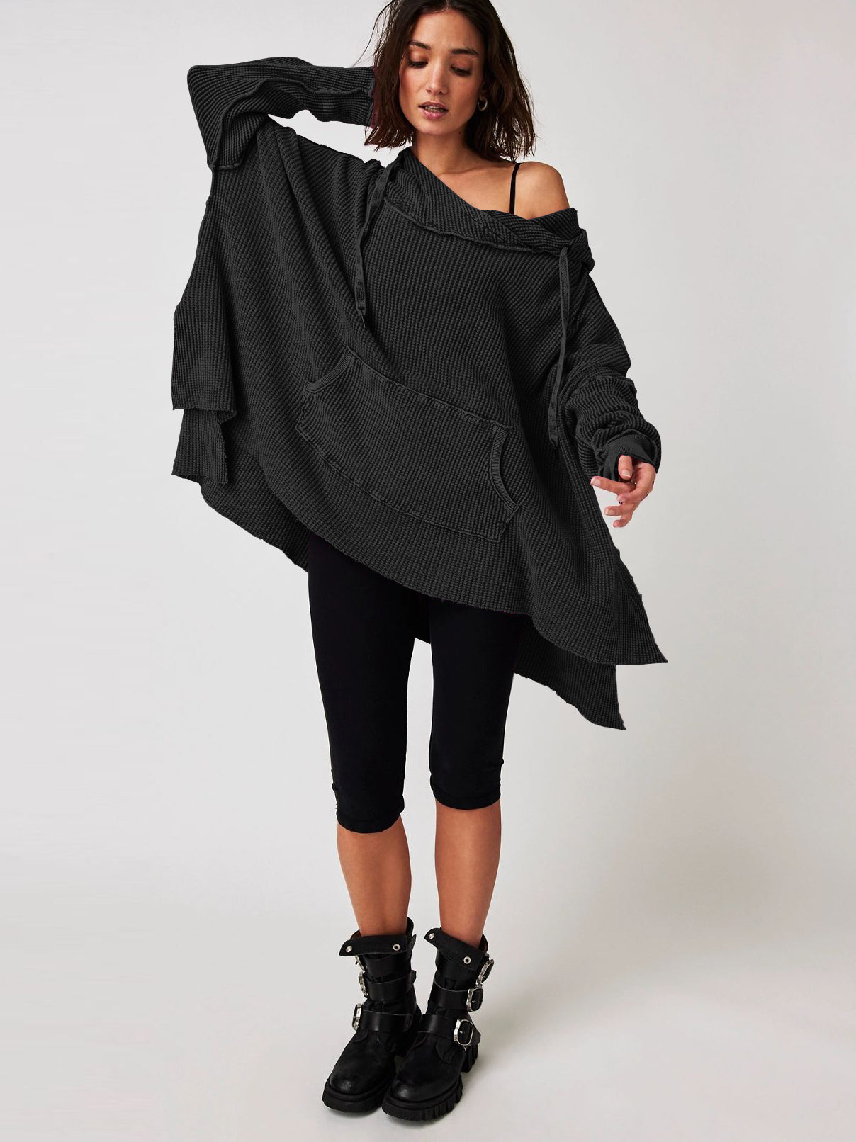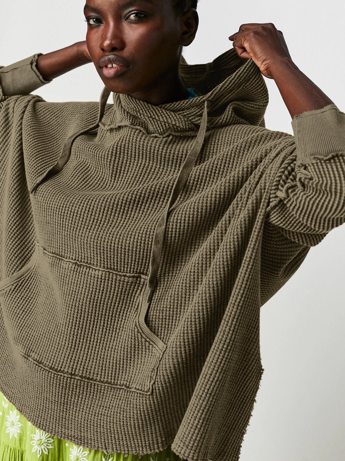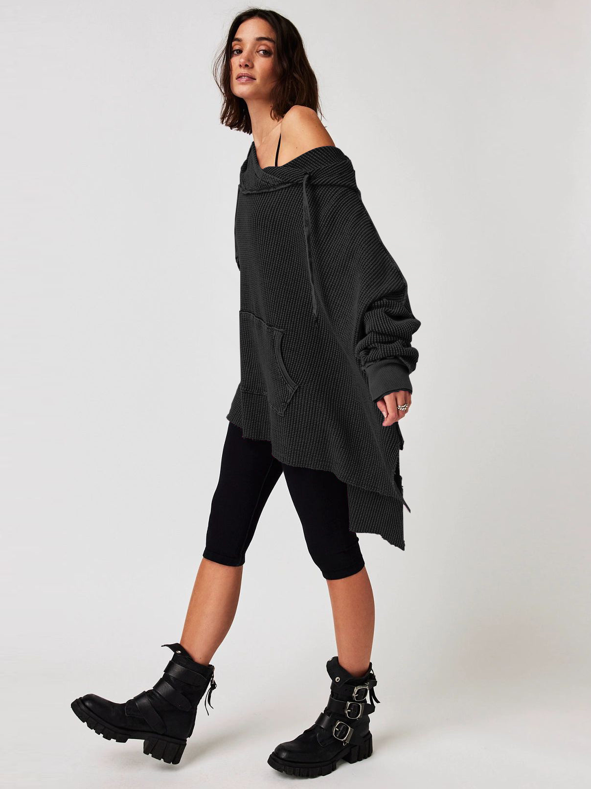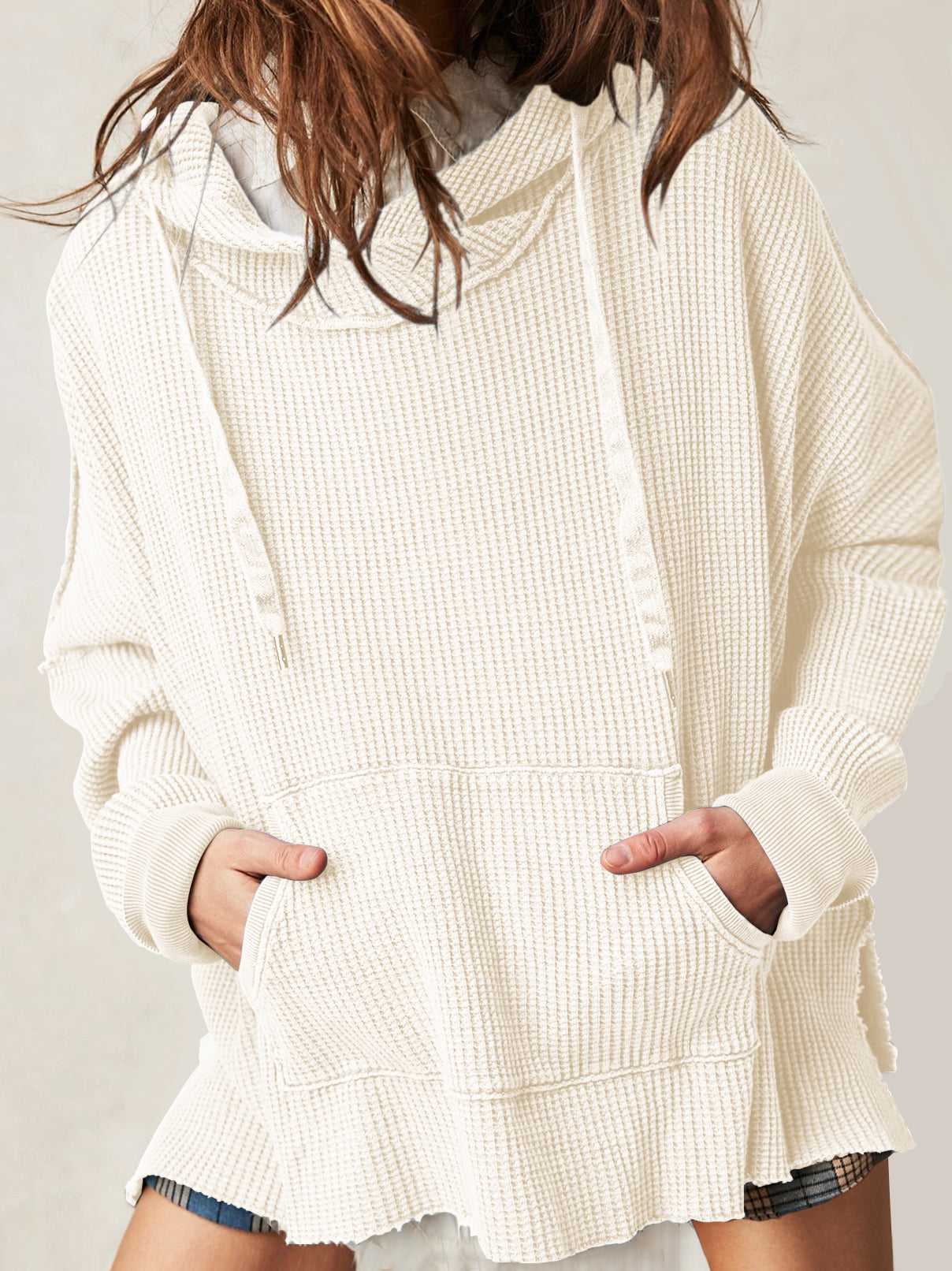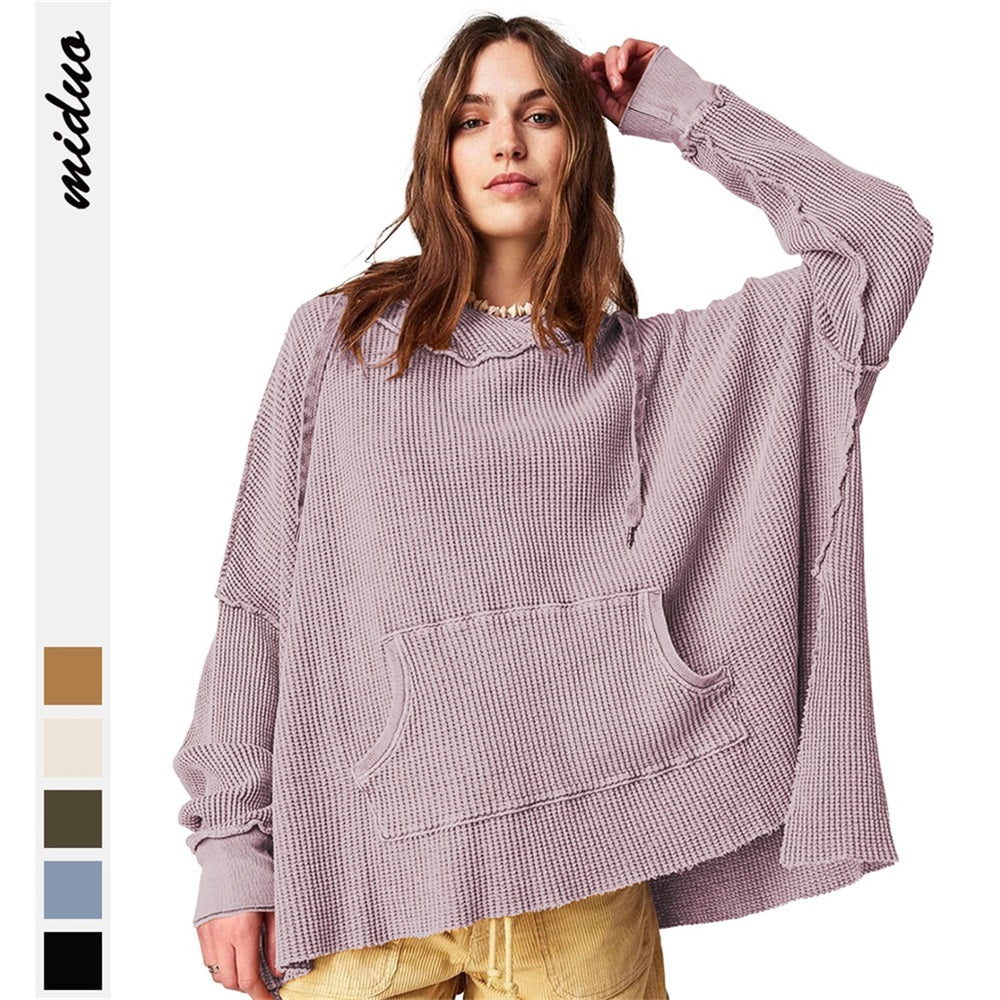 Couples Unisex Loose Pockets Waffle Sweatshirt Oversized Hoodies Women