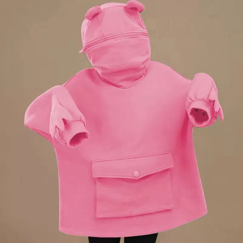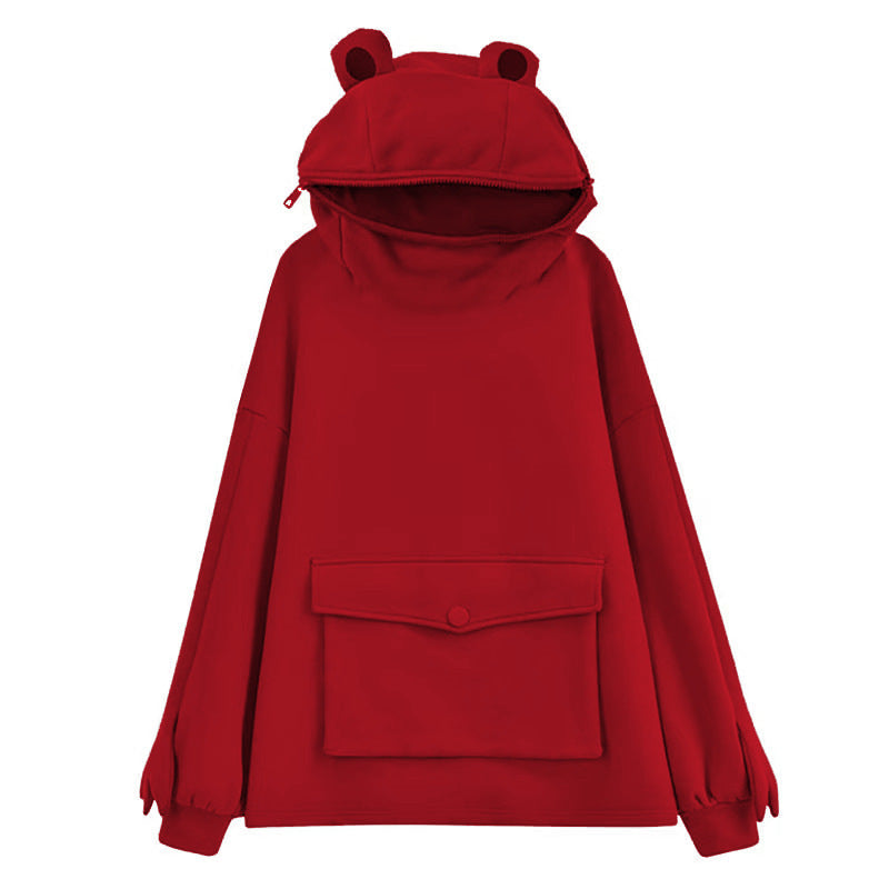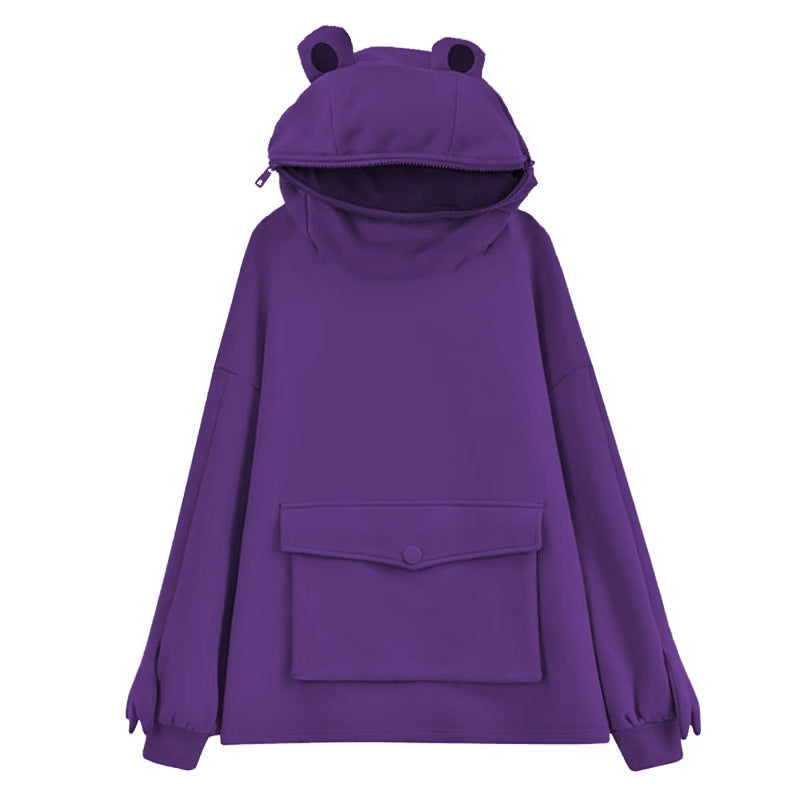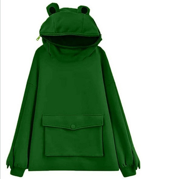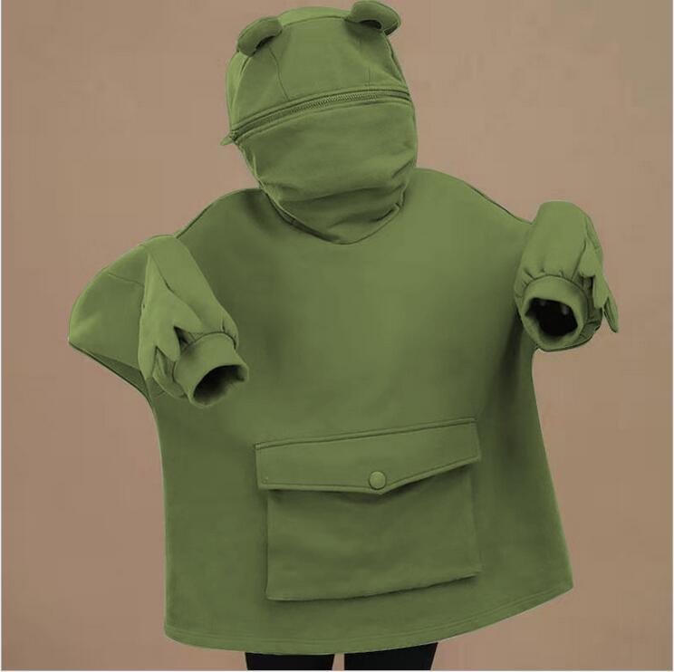 Cute Frog Pullover Hooded Loose Sweater Fleeced Men Women Hoodies Sweater Unisex Couples Long Sweatshirt