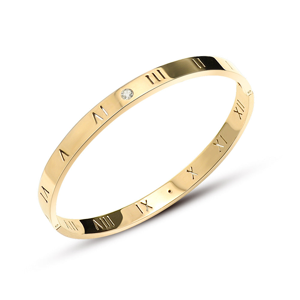 INS type zircon inlay gold plated charm titanium bracelet for couple