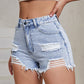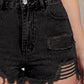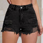 Distressed Raw Hem High Waist Denim Shorts