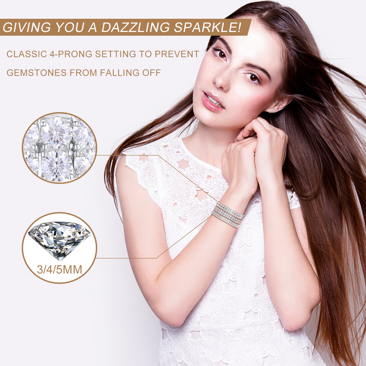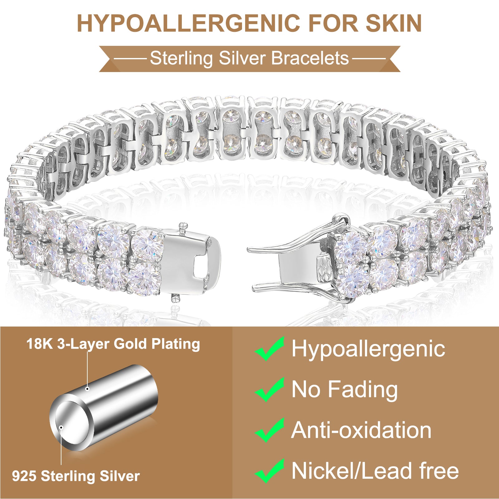* 【Classic Tennis Bracelets】: Moissanite tennis bracelet design for women/men is classic and timeless. The clasp features a secure double-latch box closure, which is strong and does not bend or break too easily and can be easily removed or put on. Timeless classical in beauty boost any casual or elegant formal attire, making you focus of the feast, banquet, meeting, dating, prom, party, travel, just feel confident to wear it, be ready for receive many compliments from your friends.