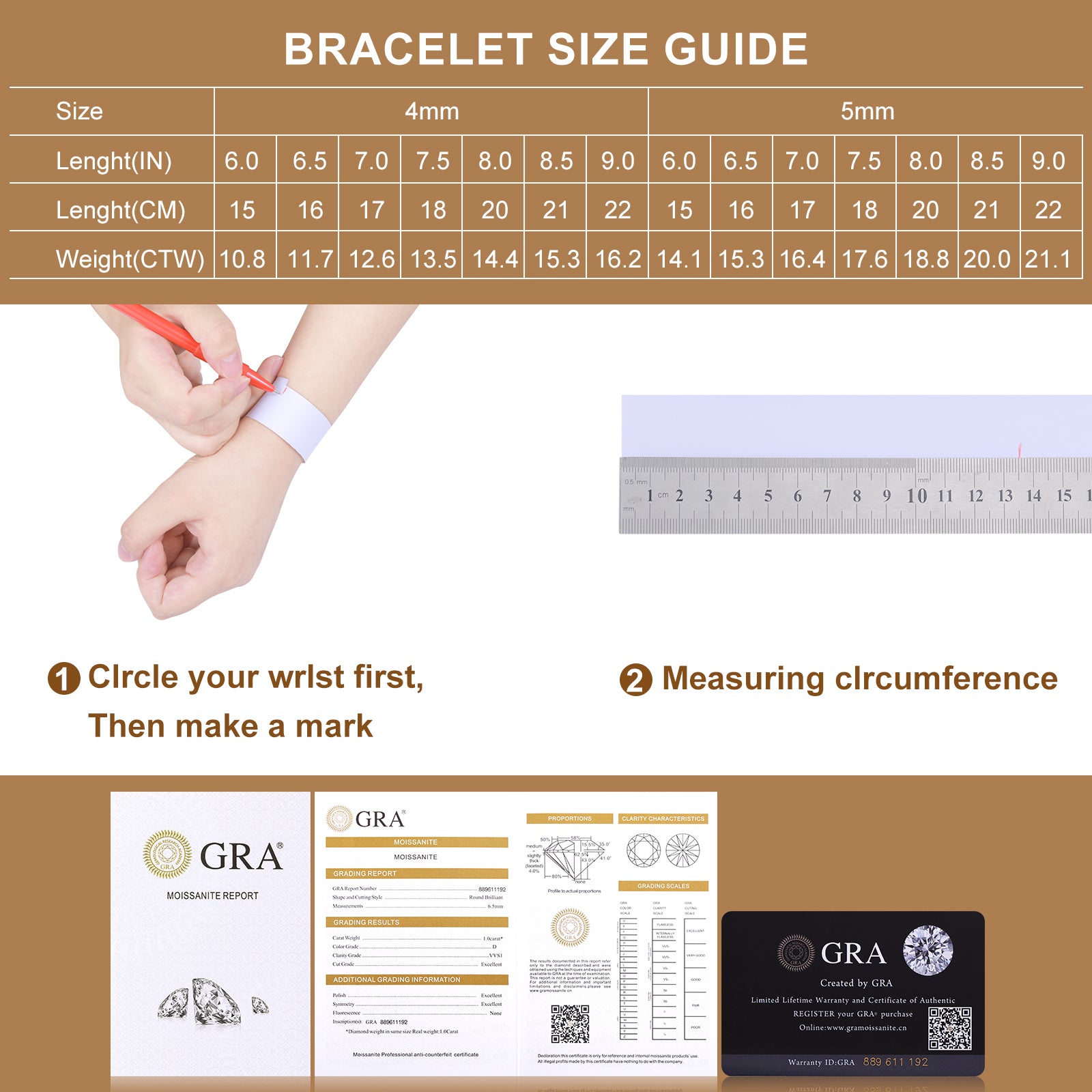 * 【Moissanites Diamond Bracelet】Moissanite is a gorgeous laboratory-created diamond, and each moissanite comes with a GRA certificate and can be 100% passed by the DIAMOND TESTER. E-EMERMAKING strict selection of D-color moissanite, which has share the similar color, hardness and elements with diamond. The excellent cutting which can maximize the reflective brilliance of the Moissanite – looks more like a diamond than competing products.