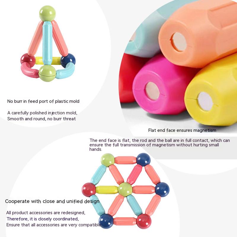Educational Stacking STEM Magnet toys Customized 3D Magnetic Building Blocks Toys 64pcs DIY Assembly Magnet Stick Game Toys