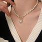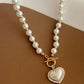 Elegant Pearl Necklace For Women Heart Pendant Necklaces Luxury Imitation Pearls Chain Necklaces Korean Jewelry Girls Gifts
