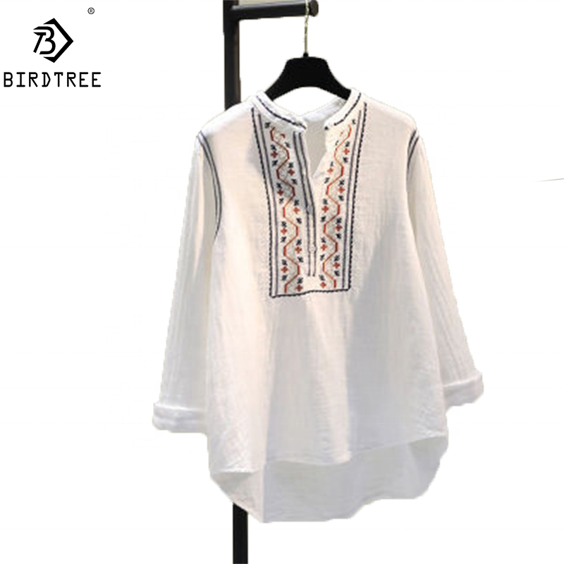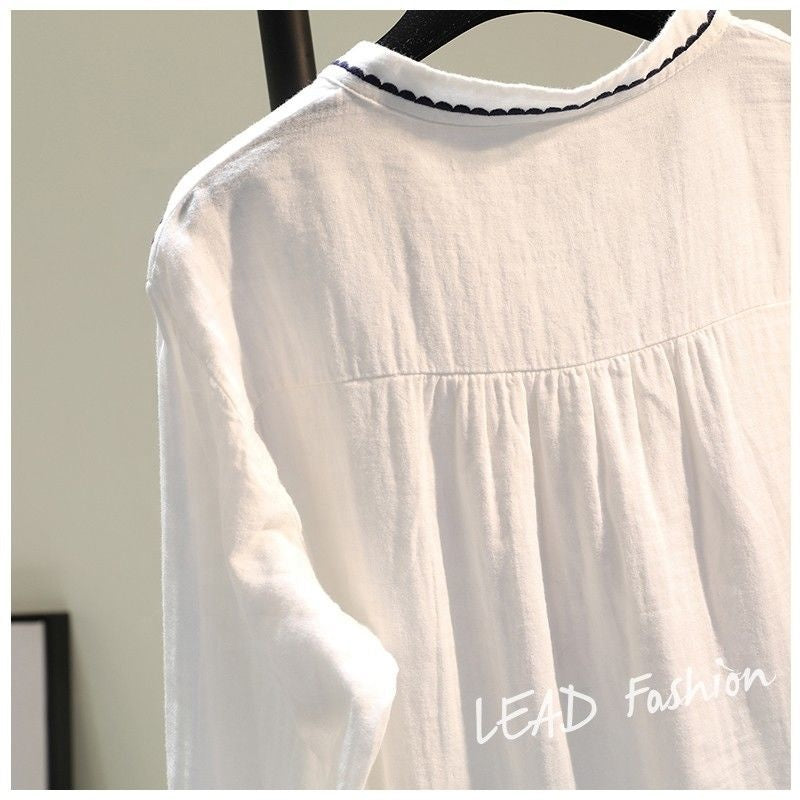 Embroidery Cotton And Linen Shirt Women Long Sleeve Vintage Blouse 2023 New Fashion Loose Casual Top Plus Size Wholesale T34516M
