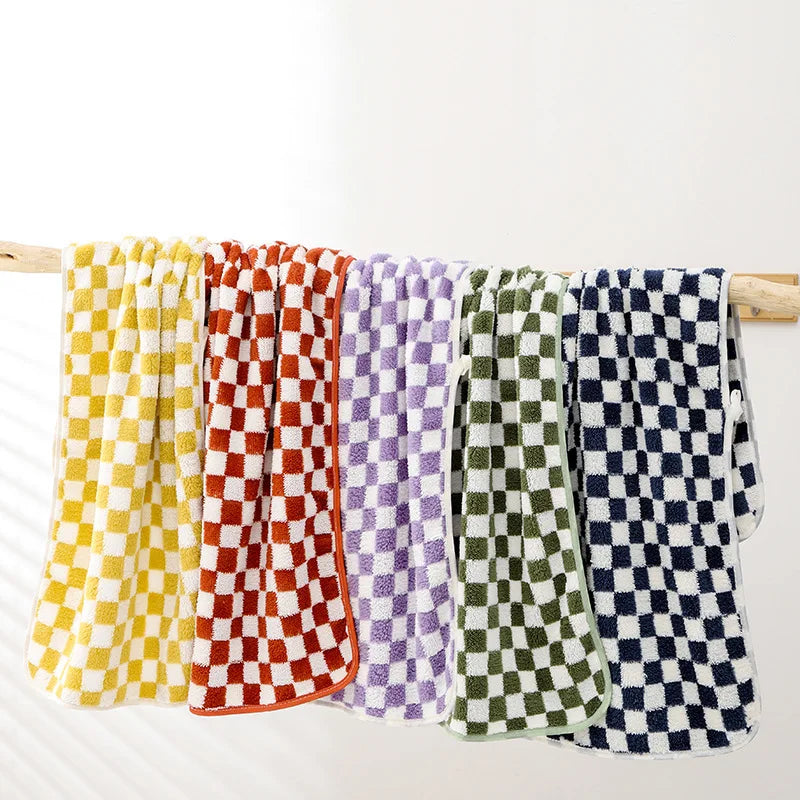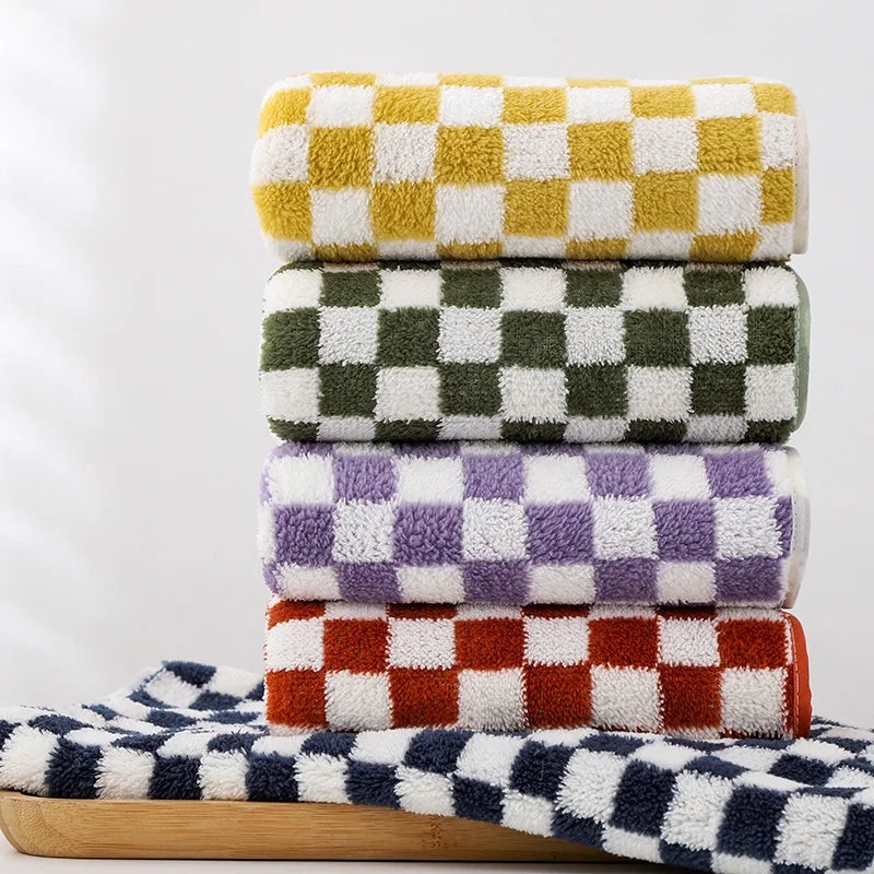 Face Towels Soft Absorbent for Spa Bath Gym Kitchen, Hand Towel Set Decorative Checkered, 13 x 29 Inches