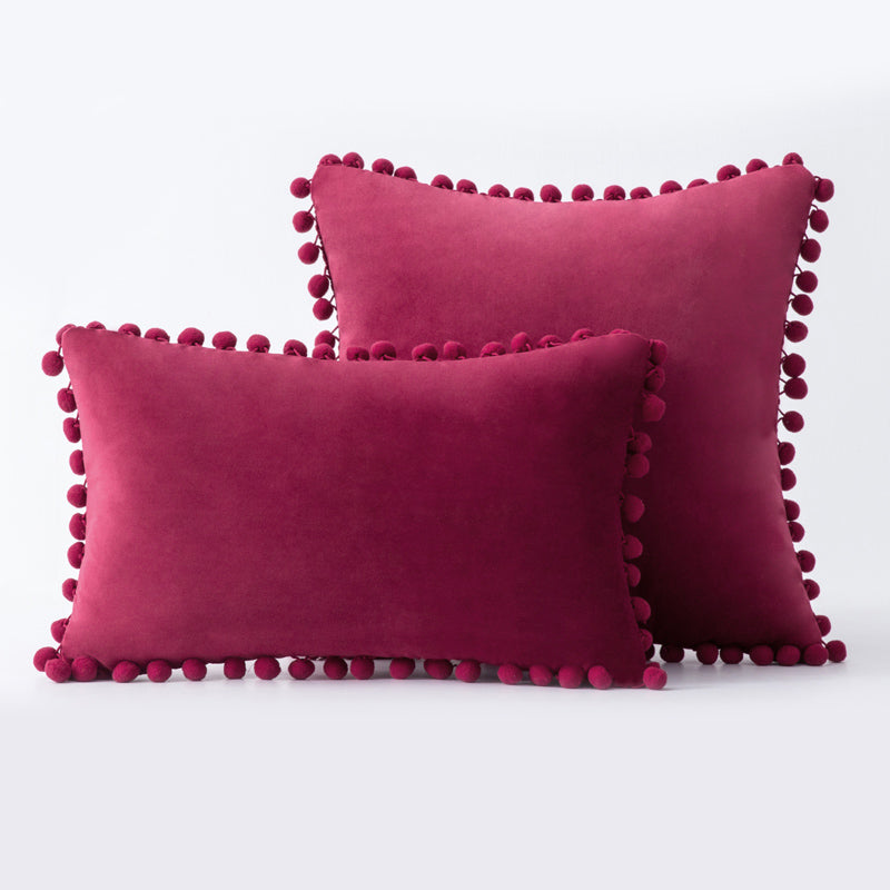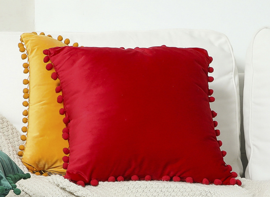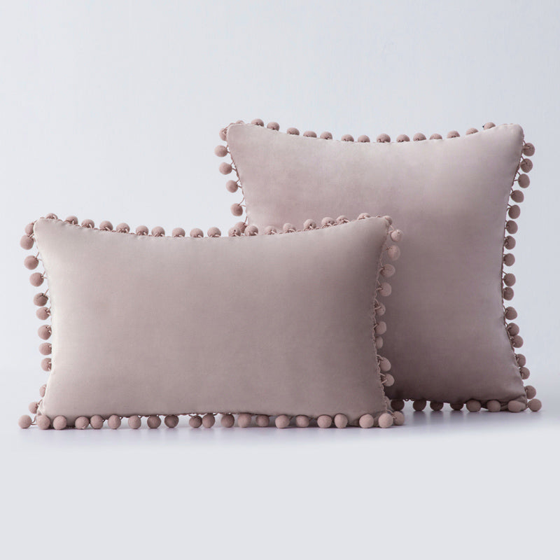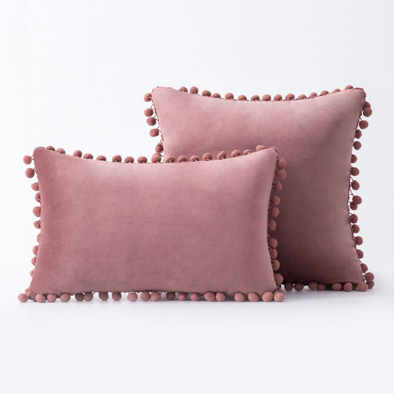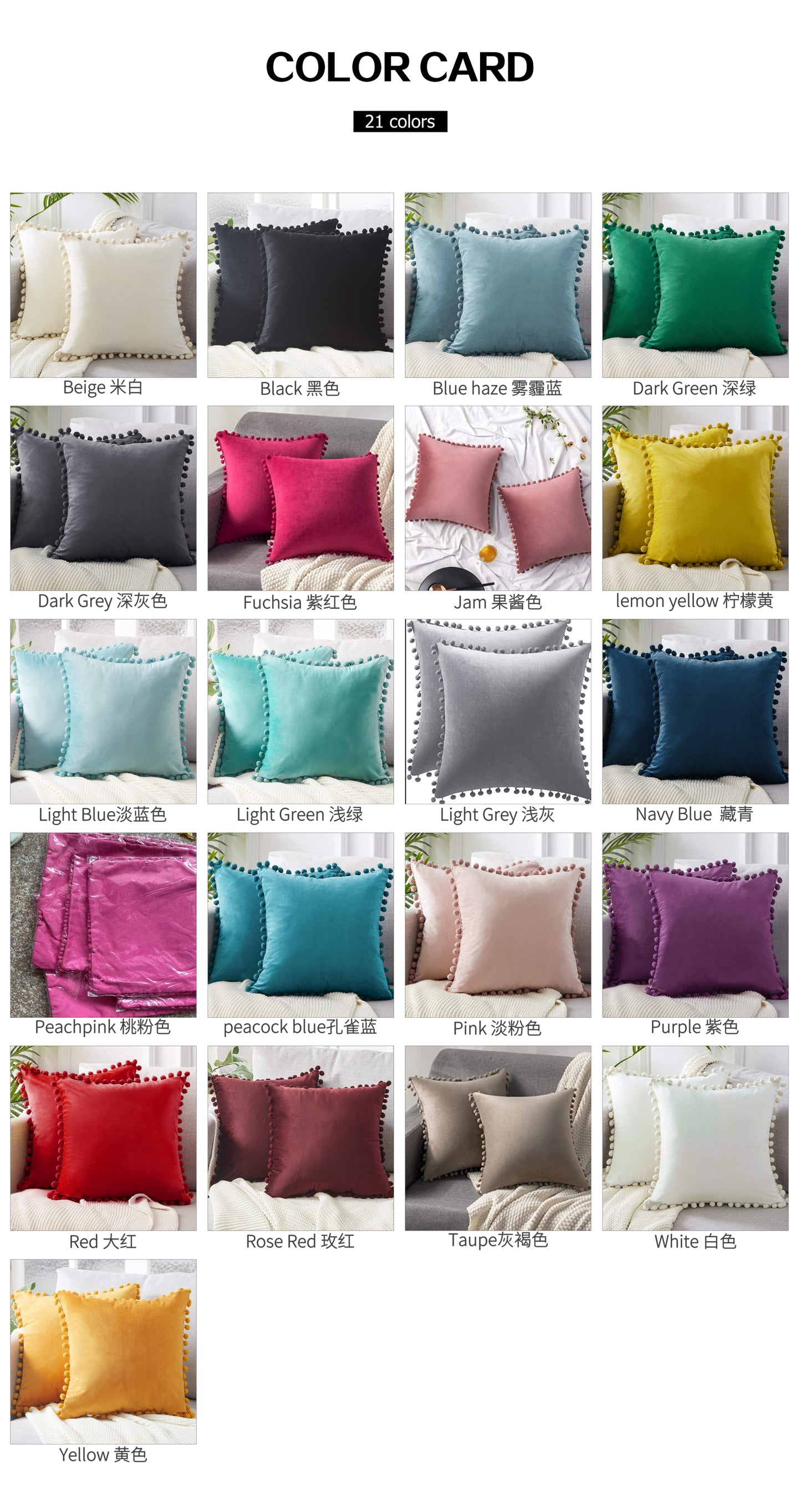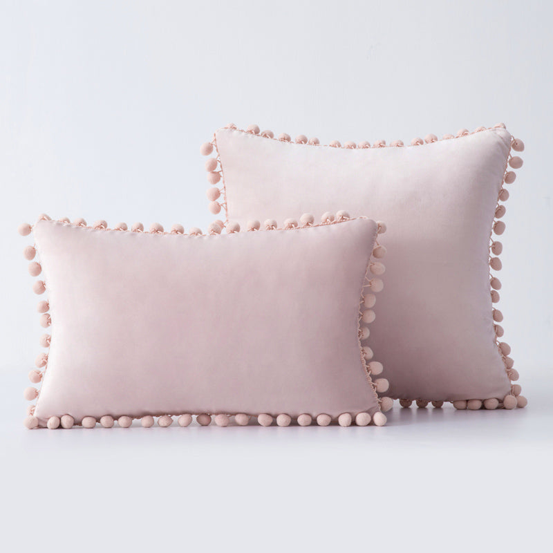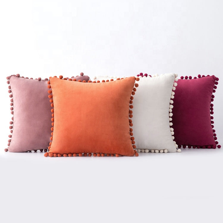 Factory Cheap Price 18 x 18 inch 45*45 cm Pillow Cover Solid Cushion Covers With PomPoms Coussin Cute pink velvet pillow case