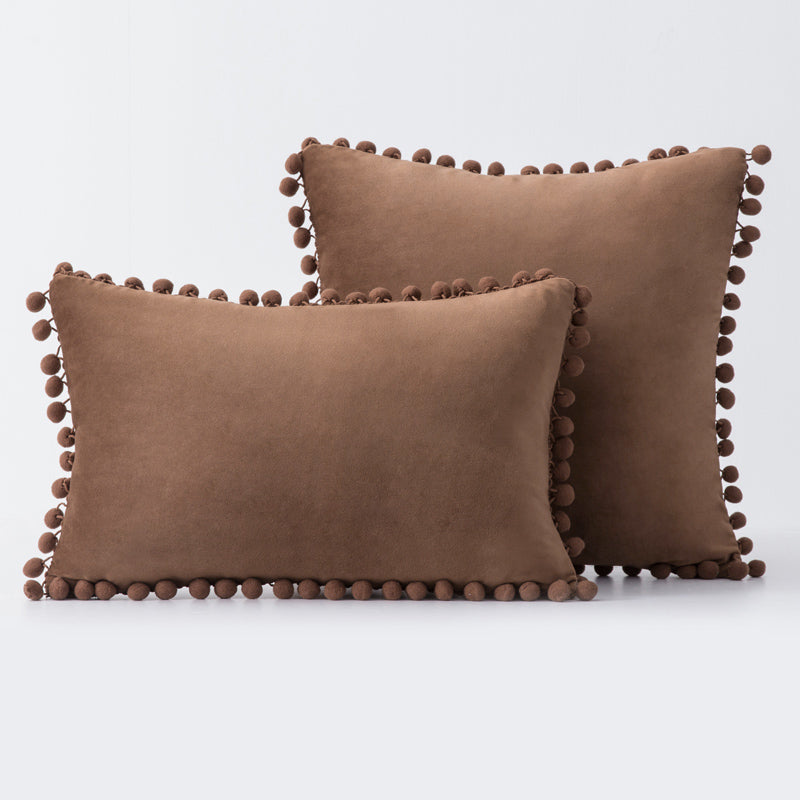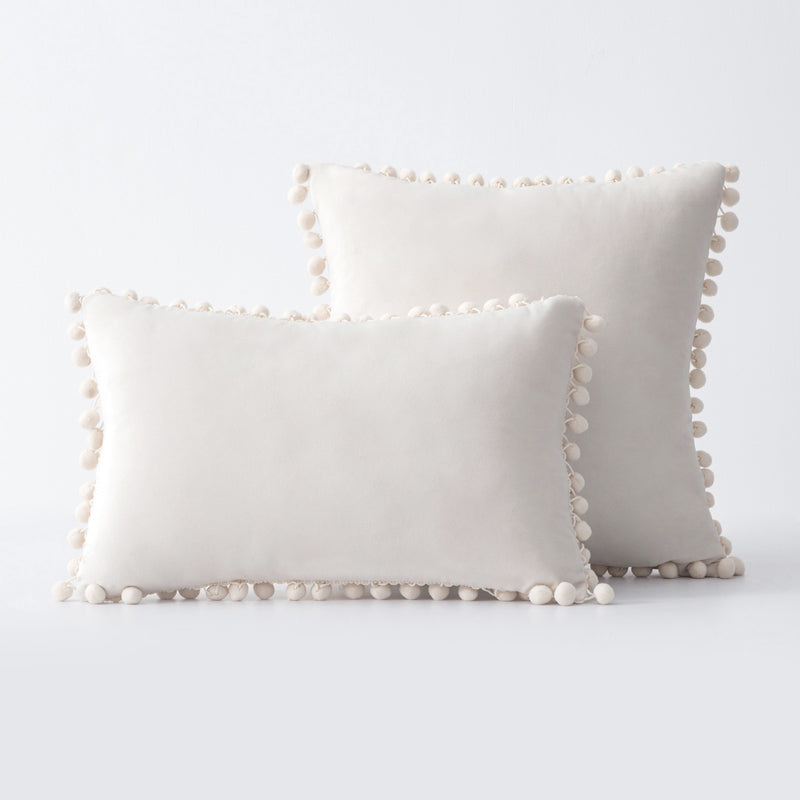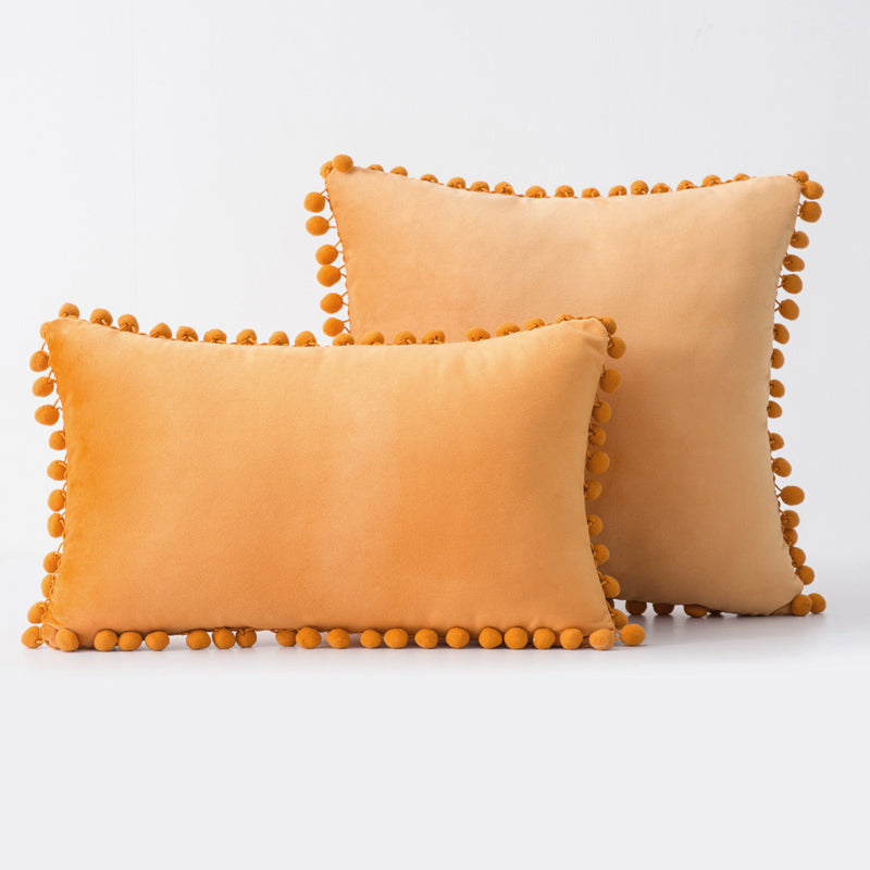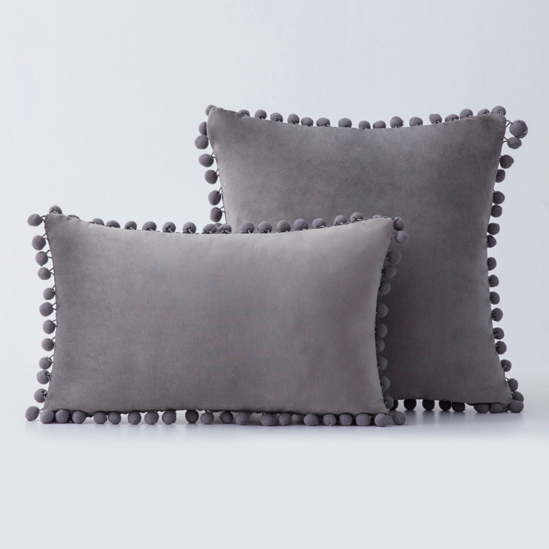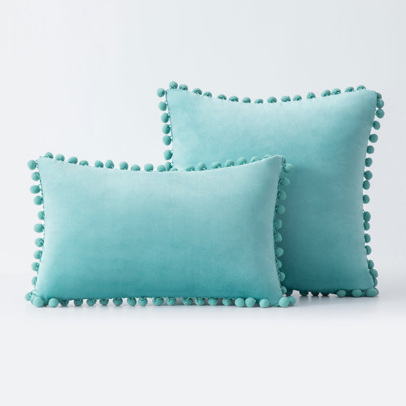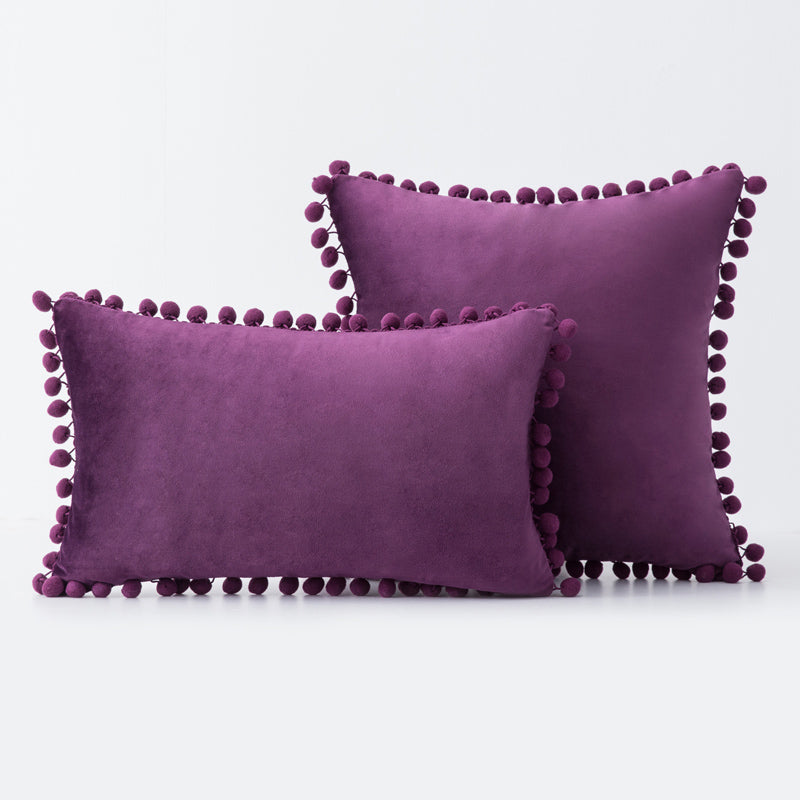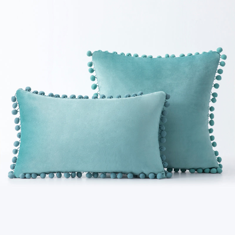 Factory Cheap Price 18 x 18 inch 45*45 cm Pillow Cover Solid Cushion Covers With PomPoms Coussin Cute pink velvet pillow case