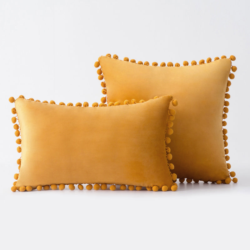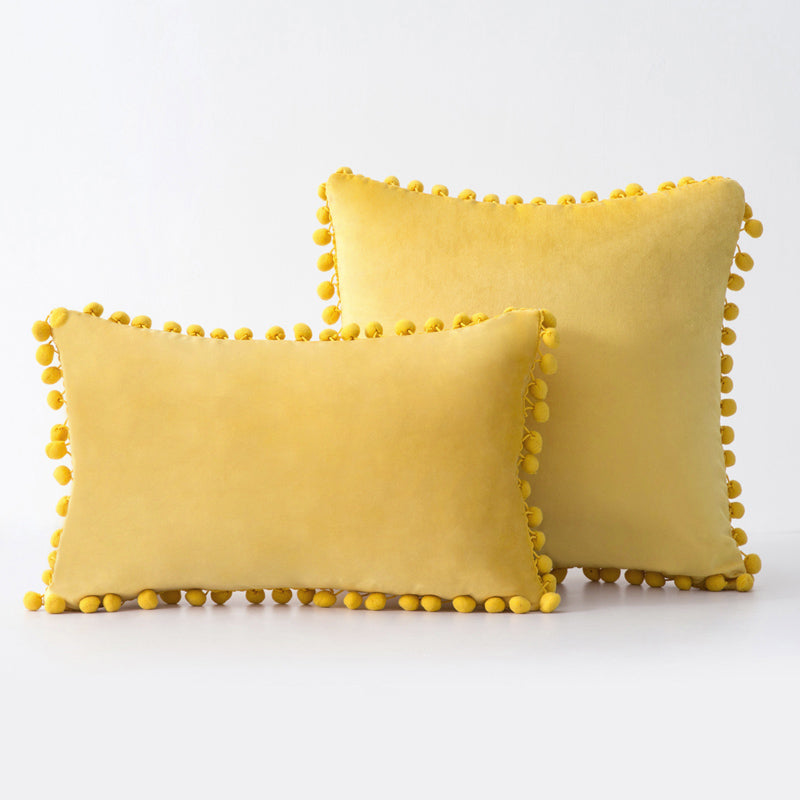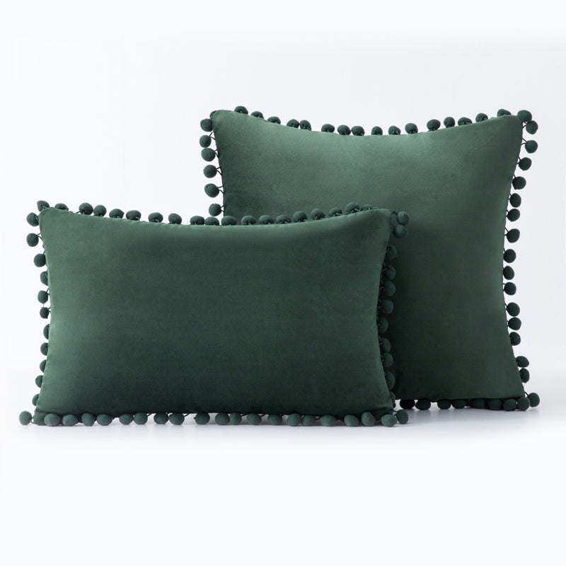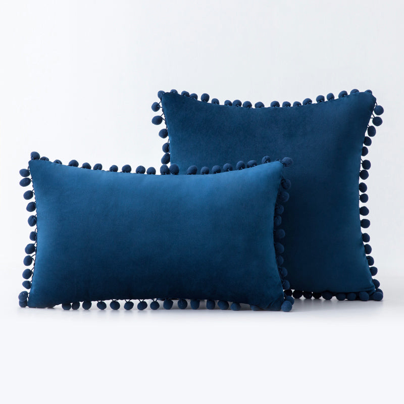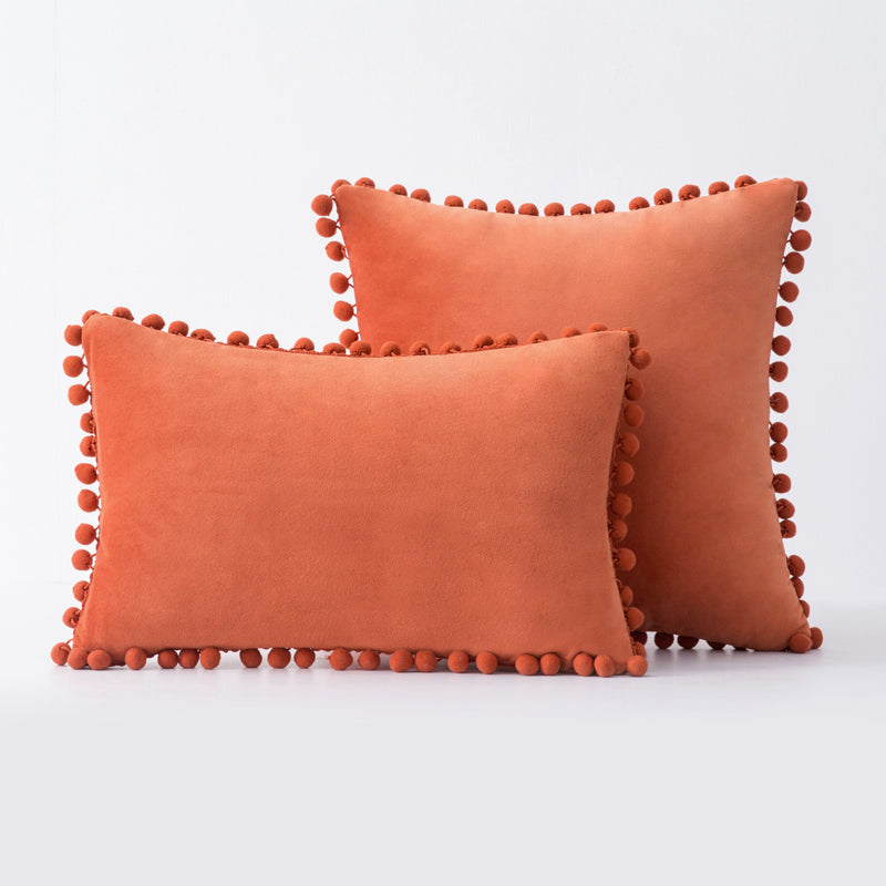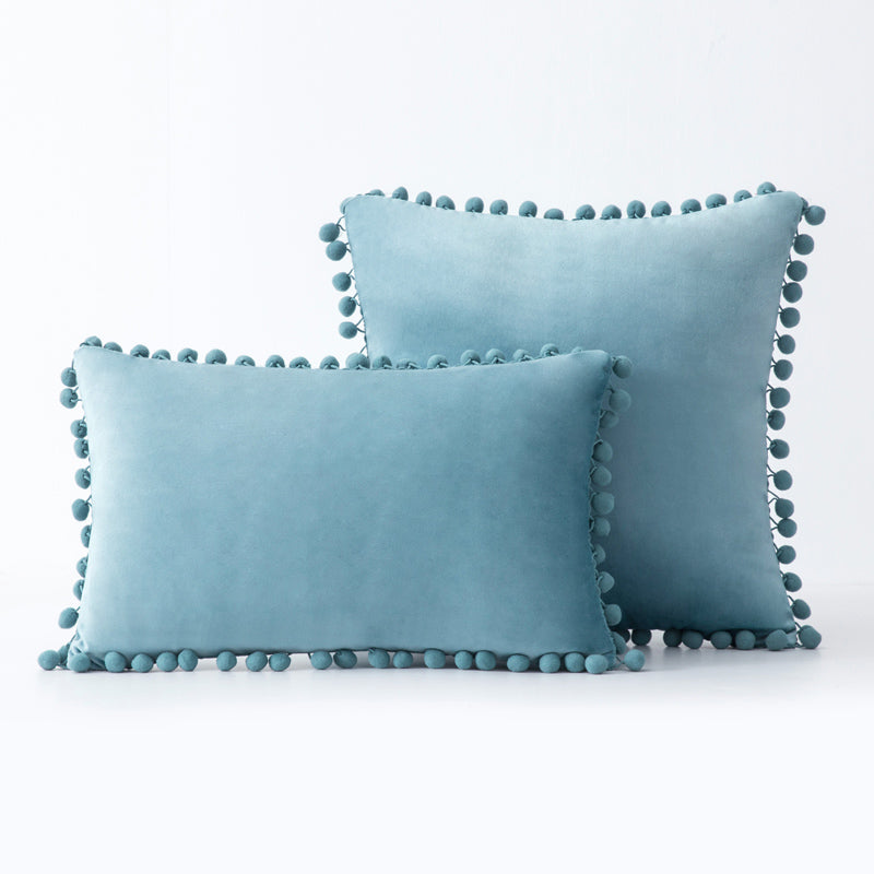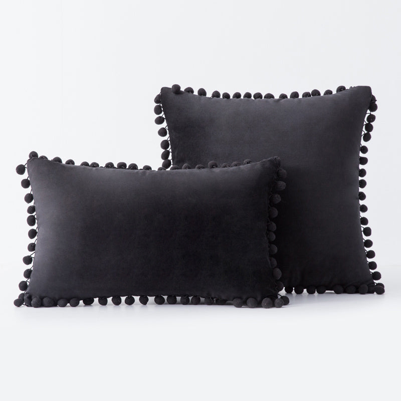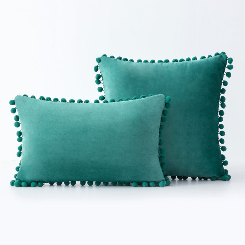 Factory Cheap Price 18 x 18 inch 45*45 cm Pillow Cover Solid Cushion Covers With PomPoms Coussin Cute pink velvet pillow case