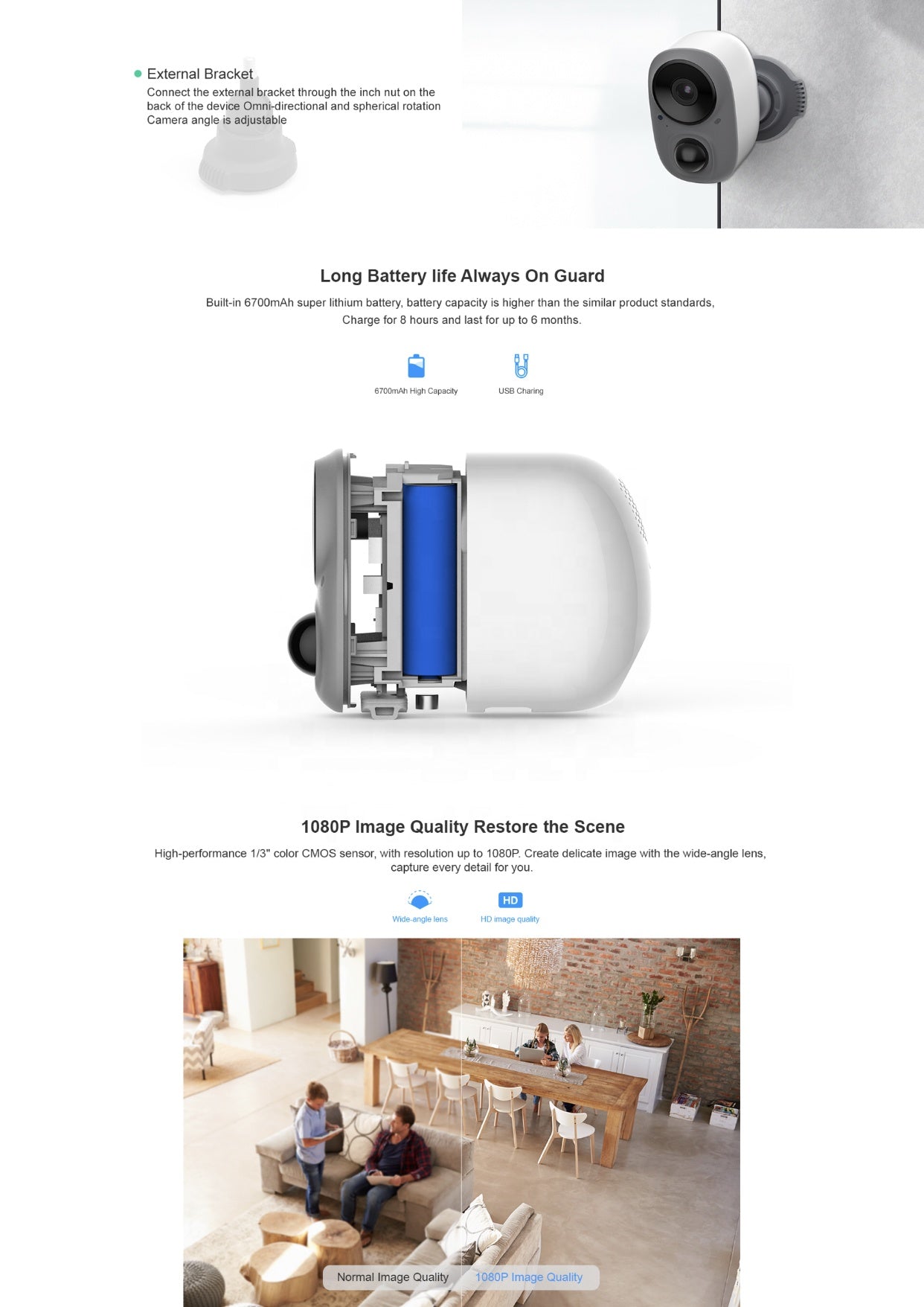 ◆ 2.4G Wi-Fi supported (IEEE802.11b/g/n)◆ Cloud storage, Micro SD card (up to 128GB) and mobile phone video