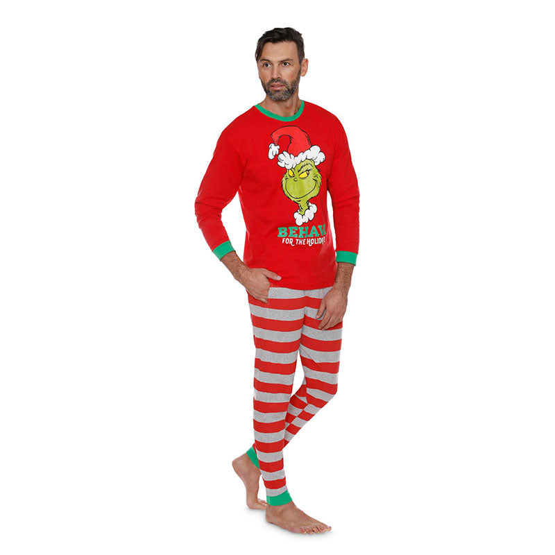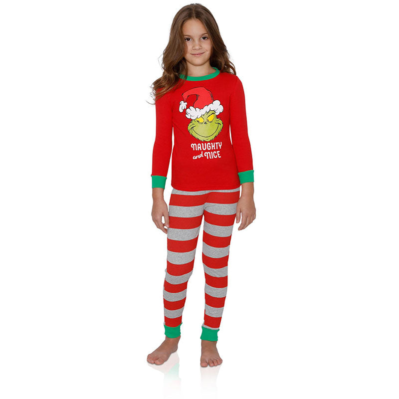 Family Matching Outfit Clothes Christmas Pajamas Parent-child Full Sleeve Red Green Patchwork O Neck Christmas Pajamas 2021