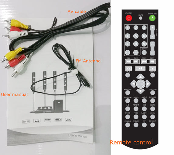 5.1ch home theatre system*1set;audio cable,remote control,user manual