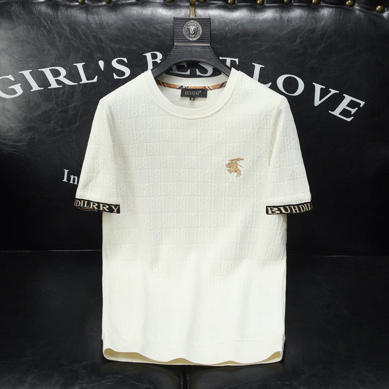 Fashion embroidered printed warm sweater T-shirt round neck short sleeve men's sweater