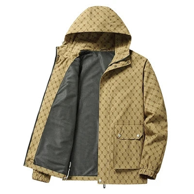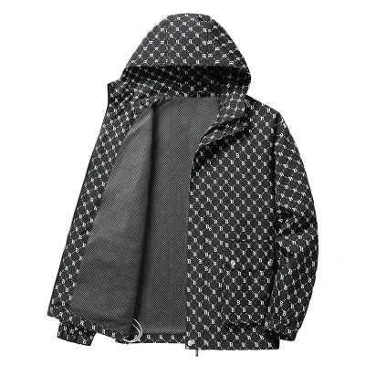 Fashion Outwear Full Printed Hooded Tooling Style Thin Casual Loose Men's Jacket