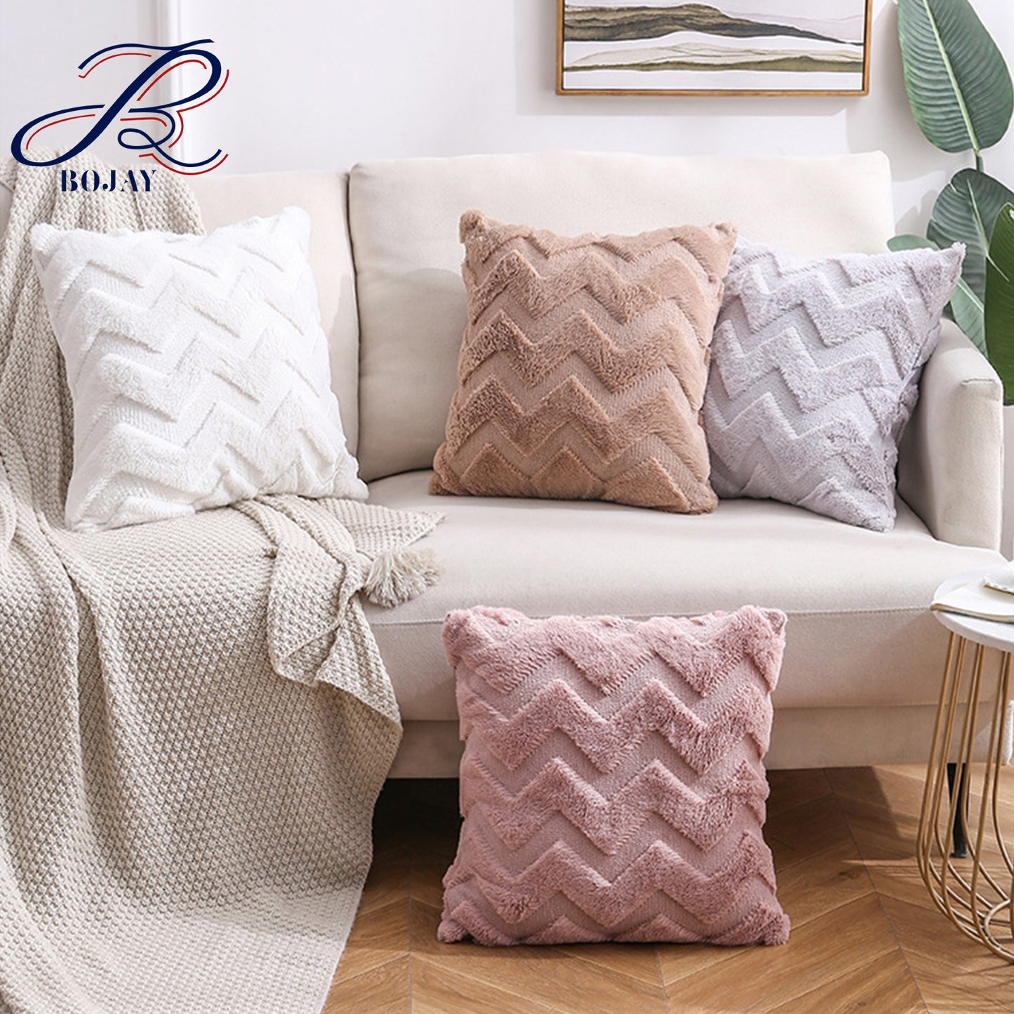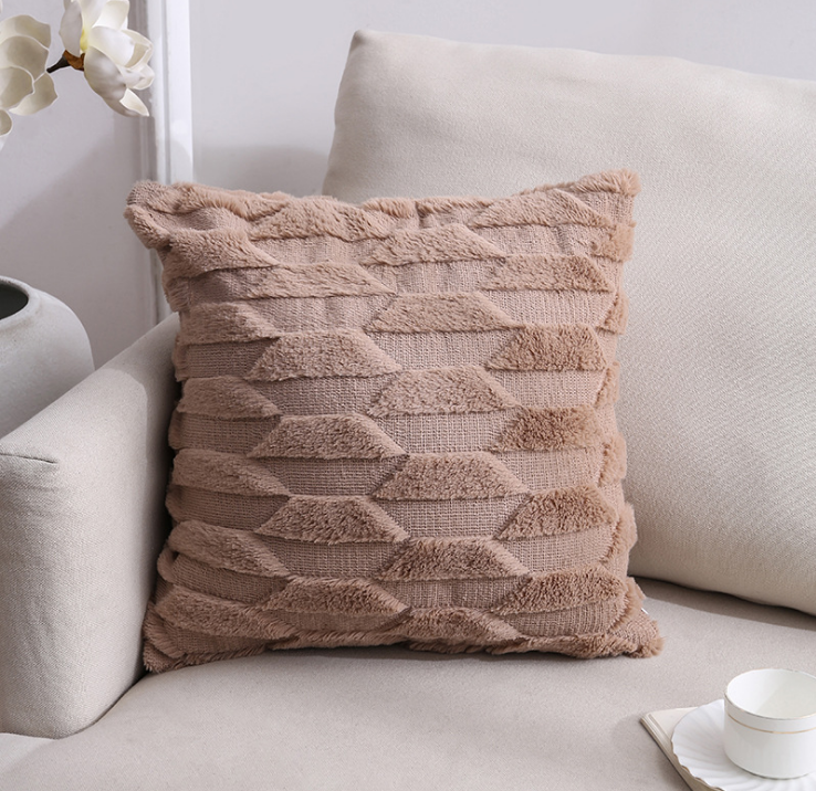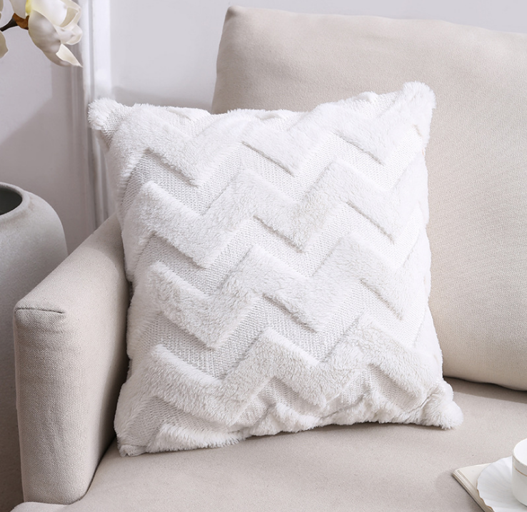 Faux Fur Plush Decorative Throw Pillow Covers Fuzzy Striped Soft Pillowcase Cushion for Sofa Couch Bedroom