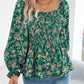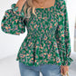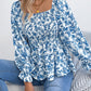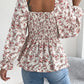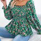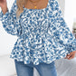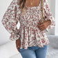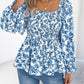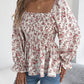 Floral Square Neck Flounce Sleeve Blouse