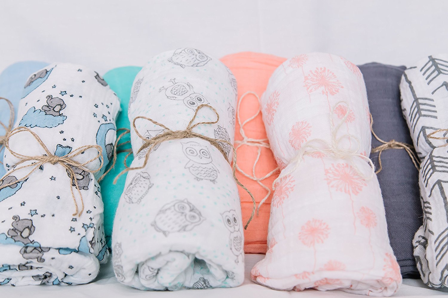 100% Cotton Nursing Baby Muslin Swaddle Blankets 47 x 47 Inches