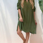 Full Size Side Slit Roll-Tab Sleeve Mini Shirt Dress Plus Size