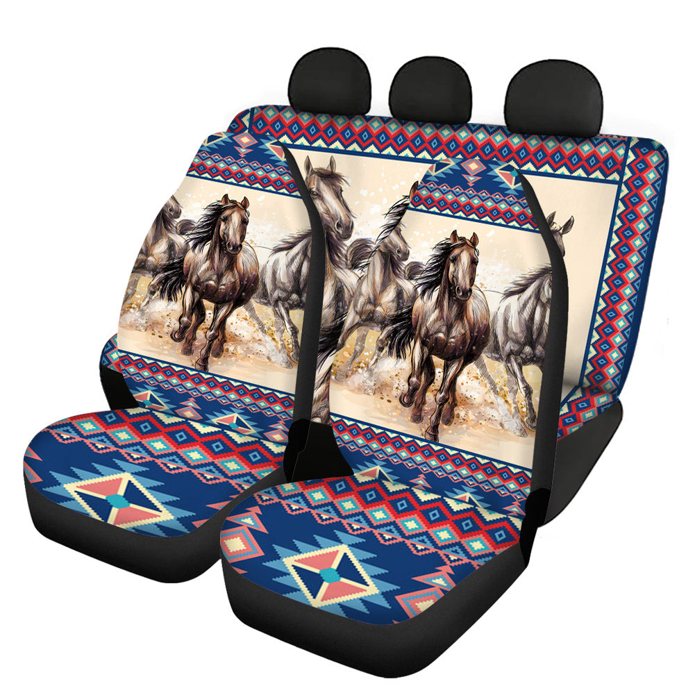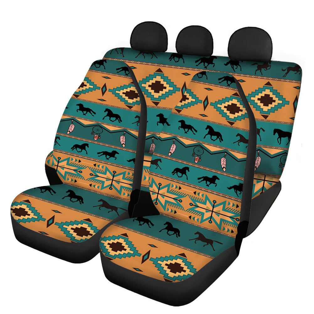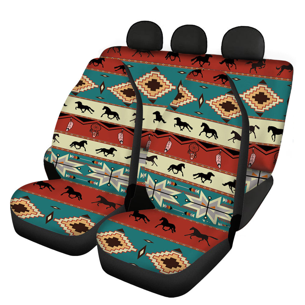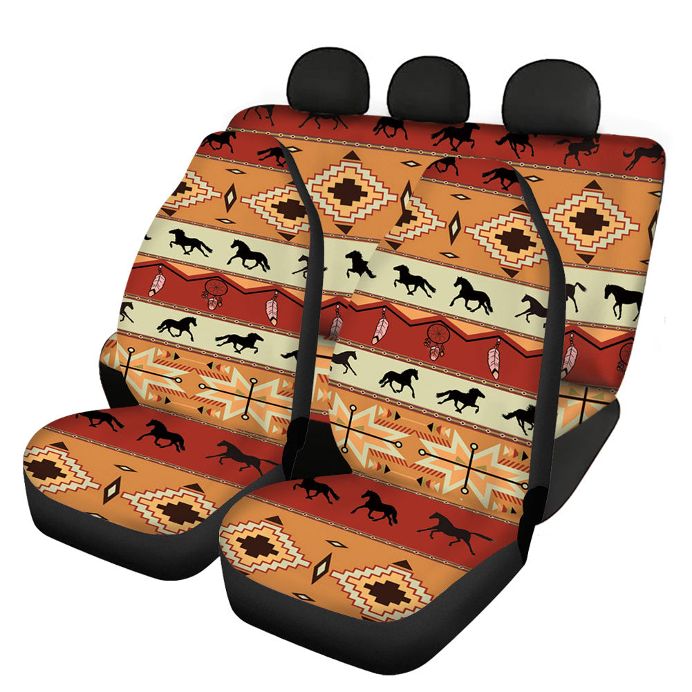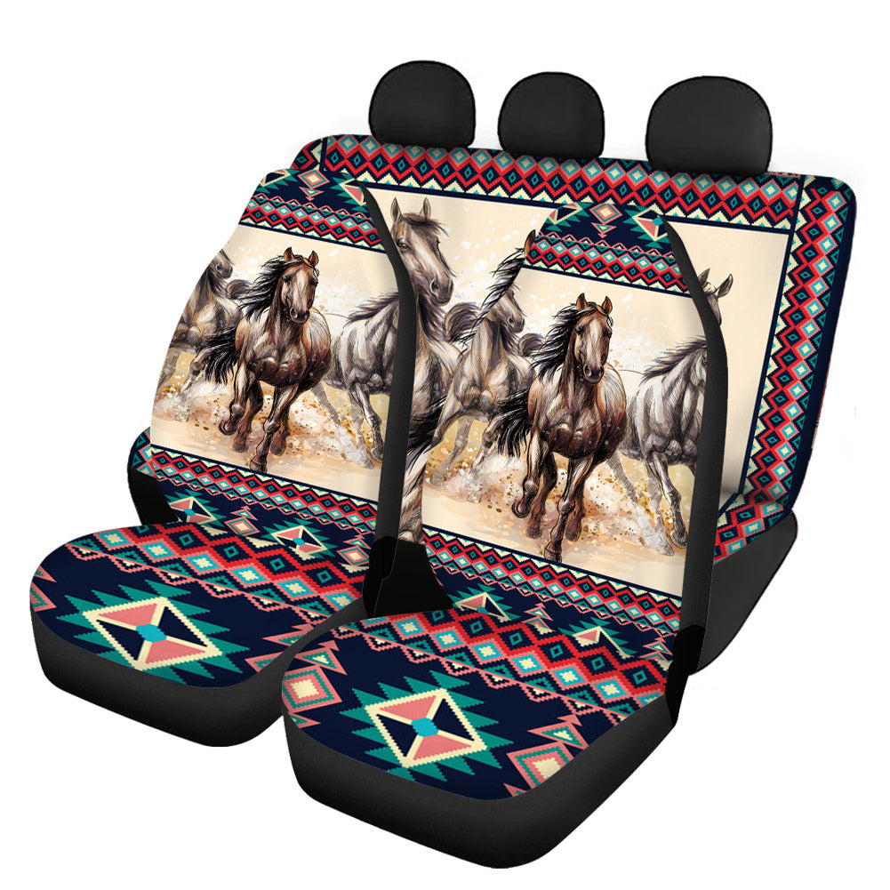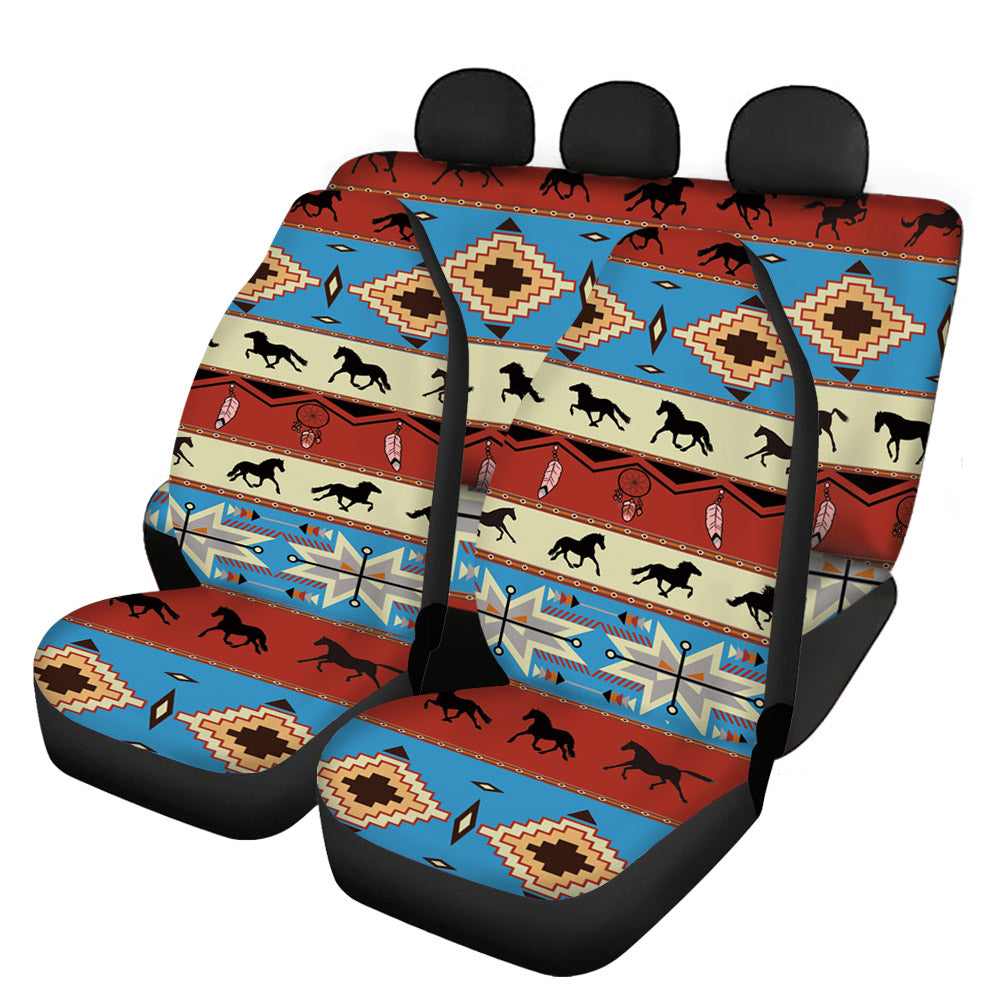 Funny Girly Tribes And Horse Hawaiian Funky 4pcs Aztec Tradition 3d Custom Print Car Seat Cover For Most Car Suv Truck Colorful