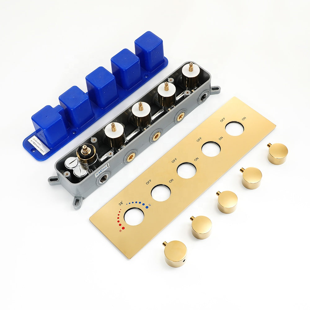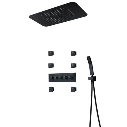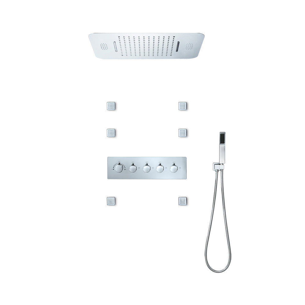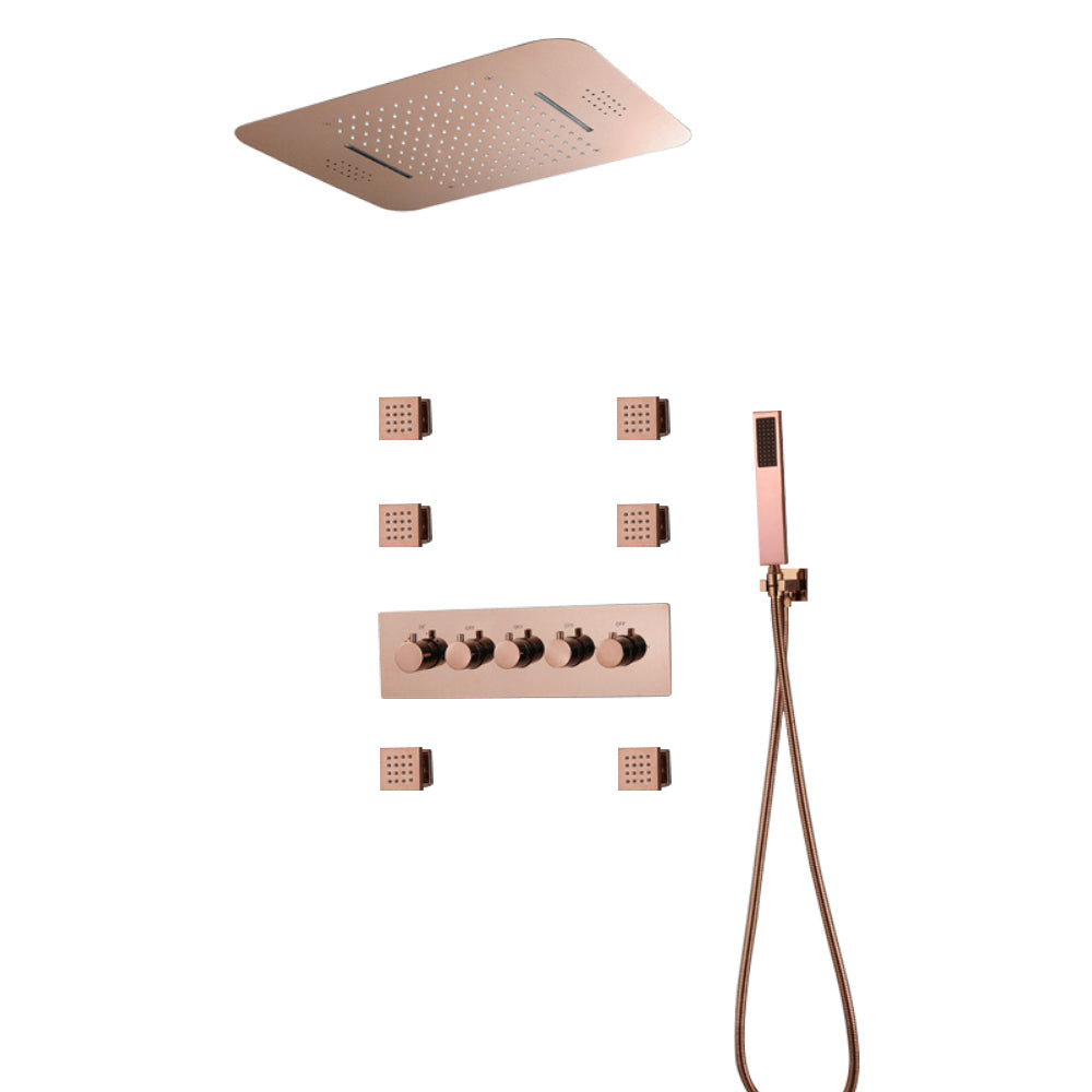ceiling 58*38cm rain and waterfall LED music shower head brass thermostatic main body bathroom gold shower faucet set