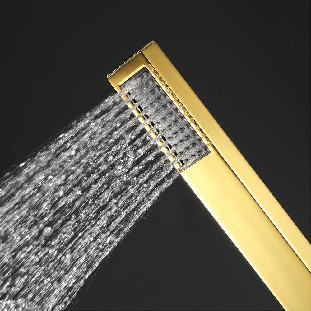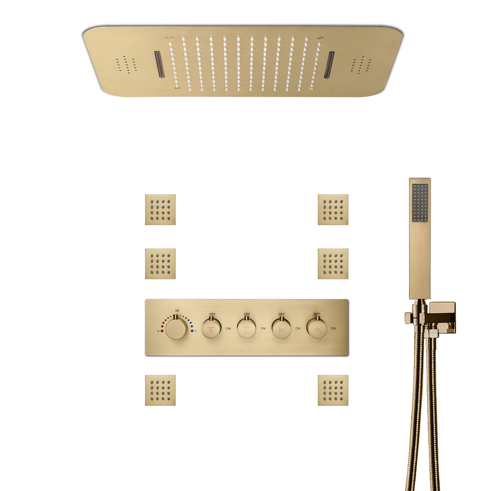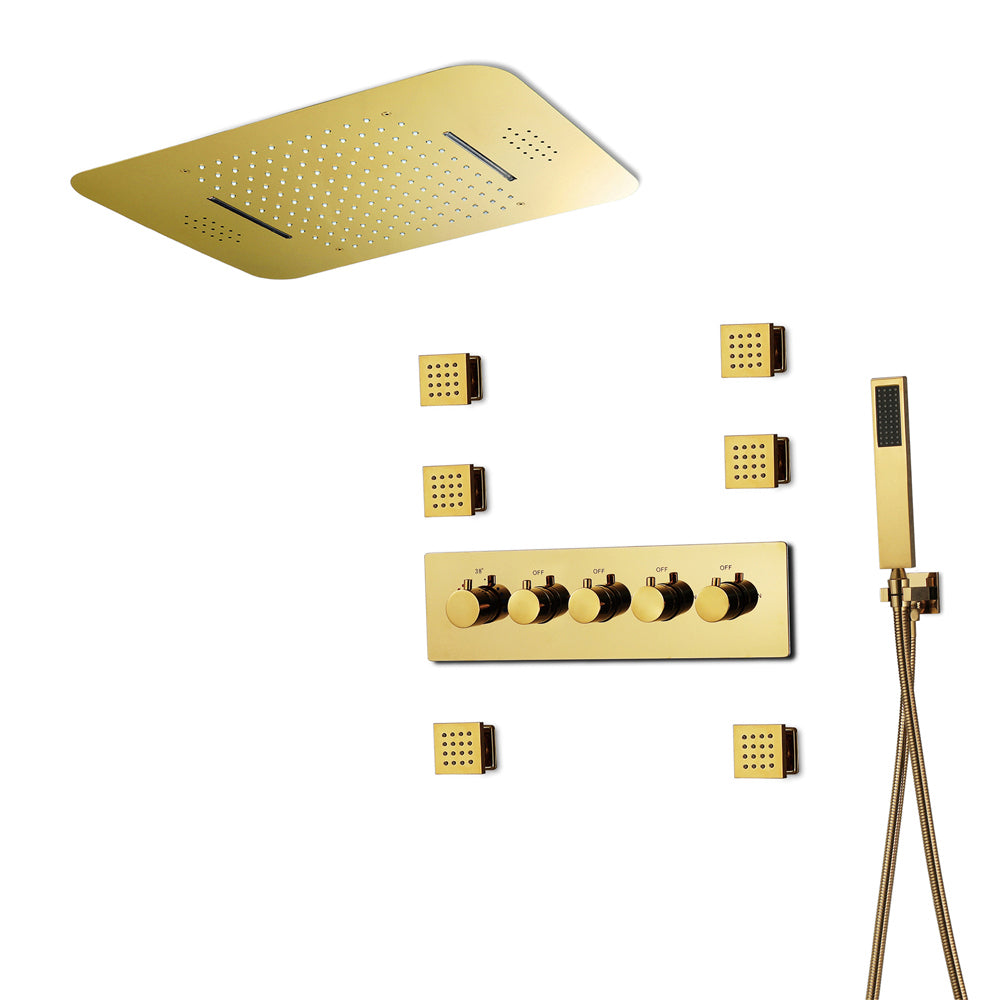 golden shower set ceiling 58*38cm rain and waterfall LED music shower head brass thermostatic Ti-PVD gold bathroom